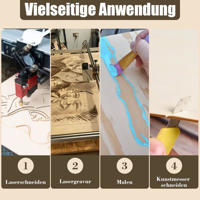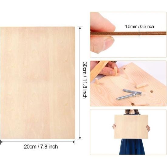TSKDKIT Panneaux de bois MDF A3 pour travaux manuels, 4 mm planches en bois feuille feuille bois SINJEUN 40 paquets de feuilles de tilleul, 20 x 10 x 0,3 cm de contreplaqué non fini, feuilles... Support Bricolage Projet Créatif Lot De 2 Feuilles De Contreplaqué Fines En Bois De Tilleul Pour Travaux Manuels Et Décoration D'intérieur, 45 × 45 Cm D'épaisseur 0,15-5 Cm, 45 × 45 × 0,4 Cm Wood Panel ✨【PANNEAU DE CONTREPLAQUÉ DE HAUTE QUALITÉ】Notre panneau de contreplaqué est fabriqué à partir de bois de tilleul de haute qualité et d'une couche intermédiaire collée. ✨【DIMENSIONS DU COLIS】Vous recevrez 12 panneaux en bois de tilleul mesurant environ 420 mm x 300 mm x 3 mm, soit environ la taille d'une feuille de papier A3., ❤️ Remarque : en raison des mesures manuelles, l'épaisseur, la longueur et la largeur du panneau de contreplaqué peuvent varier légèrement, jusqu'à +/-2 mm 20 feuilles de bois de balsa, fines feuilles de bois de tilleul non finies, planche de... La structure composite multicouche garantit une excellente dureté, flexibilité et résistance à l'humidité, prévenant efficacement les problèmes tels que les fissures ou la déformation du matériau Il est également parfait pour la découpe et la gravure au laser afin de réaliser vos dessins avec précision. ⚠️ Important : Les enfants ne doivent utiliser ces feuilles de contreplaqué que sous la surveillance d'un adulte pour éviter les blessures Que ce soit pour des projets scolaires, des travaux manuels ou des idées de décoration - ces feuilles de contreplaqué sont le premier choix