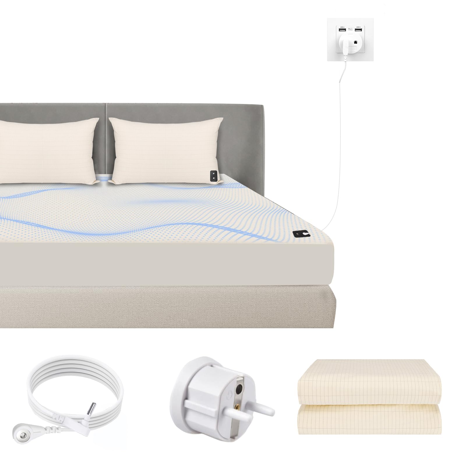 Drap de mise à la terre pour un meilleur sommeil, tapis de mise à la terre, tapis de mise à la terre pour lit conforme à la norme européenne (193 x 203 cm) · 68... Facile à utiliser : tirez le câble de terre sur le coussin de mise à la terre et branchez l'autre extrémité du câble dans la prise de terre. De cette façon, vous pouvez profiter des avantages du gaz naturel Drap Mise à La Terre Earthing Drap De Mise à La Terre Pour Un Meilleur Sommeil, Tapis De Mise à Tapis De Terre Pour Sommeil Doux et confortable : il est fabriqué à partir de 90 % de coton biologique renouvelable de classe A et de 10 % de câble de terre en argent pour vous assurer que vous l'utilisez de manière douce et confortable. Kit de mise à la terre du drap de cuivre Connectez-vous à la surface de la terre : le métal argenté dans le coussin de sol est très conducteur pour la terre et est bon pour votre peau et votre corps. Drap de mise à la terre avec câble de terre UE pour un meilleur