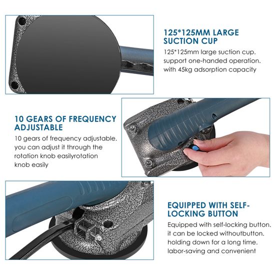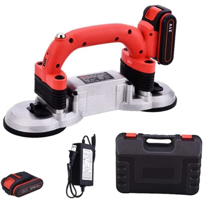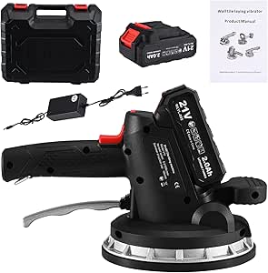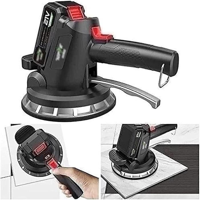 La poignée est fabriquée avec quatre couches de matériaux antidérapants et absorbant les chocs. Vibration Pose Carrelage Sol Mur Machine à Carreler Pour, Vibrateur De Carrelage électrique Avec Ventouse Vibrante Carrelage 【160mm Large Ventouse】- Cet ventouse carrelage est équipé d'une ventouse surdimensionnée de 160 mm qui génère jusqu'à 550 lb d'aspiration maximale. Ventouse Vibrante Pour Carrelage 2 Aku 21v - Gamm vert Nous fournissons deux batteries lithium-ion de 21 V, 2,0 Ah pour cet outil. Cela signifie que dans la plupart des scénarios de construction, vous n'avez pas à vous soucier des interruptions de travail dues à une batterie faible, ce qui vous permet de vous concentrer pleinement sur vos projets de construction. Applications larges : convient au mouvement et à l'installation de carrelages de sol et de murs, à la manipulation de verre, de miroirs, etc. Spécifications:Il s'agit d'une sorte de machine à carrelage de qualité, avec une grande ventouse, supporte une opération à une main, avec une forte capacité d'adsorption. 5 vitesses réglables... 【2PCS Batterie】- Vous n'avez plus besoin de lutter pour traîner des cordons lourds dans la boue et le mortier sur le site de construction. Les vibrations régulières à grande vitesse éliminent presque complètement les poches d'air et améliorent l'adhérence du carrelage au sol, ce qui permet d'obtenir une finition de qualité professionnelle. Si vous possédez déjà une batterie Ma-Kkita, cet outil vibrant pour carrelage sera parfaitement compatible avec votre batterie existante. Vibreur de carrelage, Machine-Outil de nivellement Automatique Tenu L'écran LED indique la vitesse et le niveau de la batterie. Il suffit d'appuyer sur le boulon de verrouillage pour verrouiller la ventouse, il n'est pas nécessaire de saisir fermement la poignée.