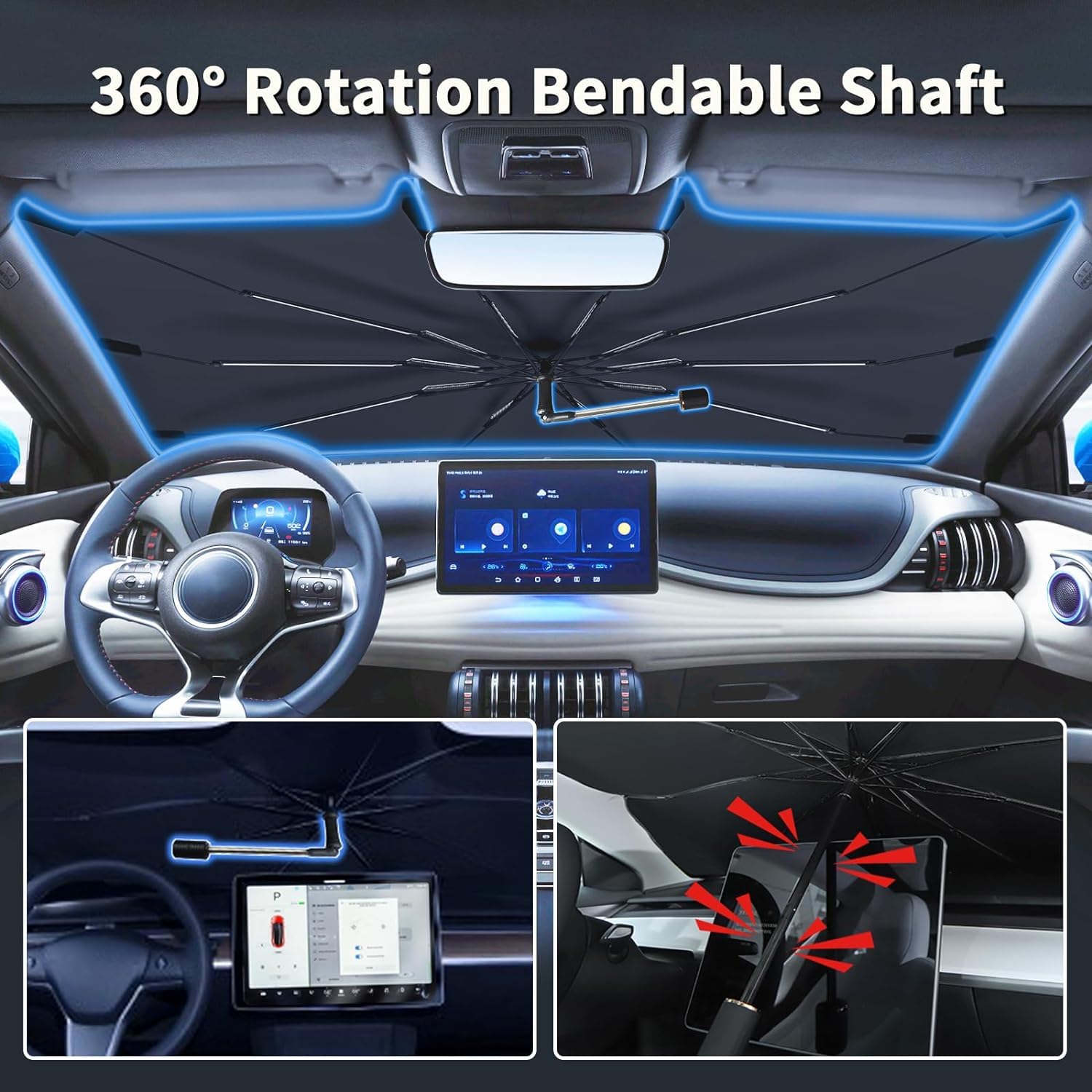 QWORK® Coupe Circuit de Batterie Voiture, Isolateur Interrupteurs... Poignée ergonomique : Poignée ergonomique rotative à 360° et courbée à 90° pour une manipulation aisée. Protection efficace : Offre une excellente protection UV et isolation thermique, idéale pour protéger l'intérieur du véhicule. Pare Soleil Fibre De Carbone Poignée 360 WALSER Store Pare-soleil Pour Voiture, Protection Solaire Pour Voiture Pare-soleil Pour SUV Camion Dimensions compatibles : Largeur de 145 cm et hauteur de 85 cm, convient à différents types de véhicules. Le pare-soleil de voiture fournit une large couverture des vitres latérales de la voiture et ofe une protection suffisante contre les rayons du soleil. Un accessoire de voiture pratique et indispensable pour l'été Description du produit QWORK Pare-soleil pour voiture, auto parapluies squelette en fibre de carbone améliorée avec poignée rotative à 360°, pour voitures, SUV et camions Avertissement De Sûreté NoWarningApplicable QWORK® Coupe Circuit de Batterie Voiture, Isolateur Interrupteurs