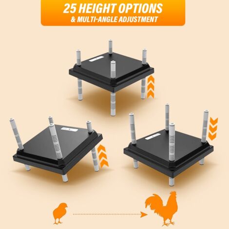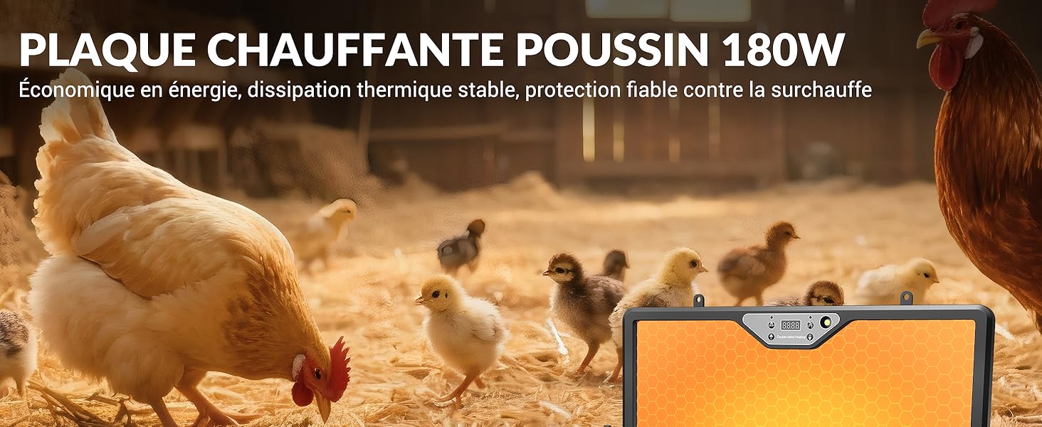 Gardez vos poules heureuses et à l'aise pendant la saison froide et assurez la sécurité de vos animaux de compagnie ou de votre bétail. Mumisuto - Plaque Electrique pour Poussins Lampe Chauffante Poussin La chaleur émise est douce mais non brûlante, ce qui maintient le plateau chaud longtemps sans brûler vos volailles ni le foin à proximité. Plaque Chauffante La Lampe Chauffante Poussin Avec Thermostat : DBZDM – La Jolie Poule Pondeuse équipement Avicole Télécommande Une télécommande est fournie pour un réglage facile de la température. Spécifications : Type d'article : Plaque chauffante pour poussins Matériau : PP Couleur : Vert Dimensions : 23 x 7 x 7 cm Poids : 680 g Puissance : 500 W Tension : 220 V Surface de chauffage : 3 m² (hauteur : 70 cm) Température de réglage : 27 à 36 °C Application : Convient pour la conservation de la chaleur des volailles, du bétail et autres animaux reproducteurs Contenu : 1 plaque chauffante pour poussins 1 télécommande Plaque Électrique Pour Poussins, Pour Poussin Lampe Chauffante De Remplacement Pour La Couveuse... Gardez vos poules heureuses et à l'aise pendant la saison froide et assurez la sécurité de vos animaux de compagnie ou de votre bétail Le chauffage est doté d'une grille unique qui assure une chaleur douce et agréable, sans être brûlante, offrant un environnement confortable à vos animaux Le chauffage est doté dune grille unique qui assure une chaleur douce et agréable, sans être brûlante, offrant un environnement confortable à vos animaux , Télécommande portable : Le chauffage pour incubateur à poussins est équipé dune télécommande pratique pour une utilisation flexible Chauffage doux : La plaque chauffante pour poussins offre un environnement chaud et confortable aux poussins pendant la saison froide ou pendant leur jeune âge en réchauffant doucement l'air et en permettant à l'air chaud de circuler. Thermostat automatique : Le chauffage pour poulailler est doté d'une puce intégrée qui détecte automatiquement la température ambiante. Télécommande portable : Le chauffage pour incubateur à poussins est équipé d'une télécommande pratique pour une utilisation flexible. Le panneau supérieur est équipé d'un système de dissipation thermique automatique, offrant une plus grande surface de chauffage et une meilleure efficacité énergétique que les panneaux chauffants classiques. Largement utilisé : Cette lampe chauffante pour poules peut chauffer une surface d'environ 3 mètres carrés à une hauteur de 70 cm, ce qui la rend idéale pour garder au chaud vos animaux domestiques tels que chats, chiens, poules, canards et oies.