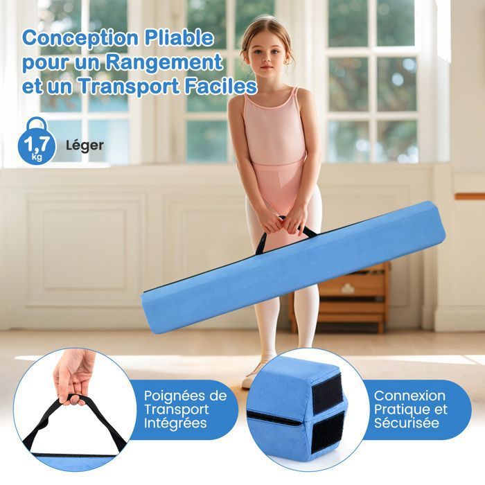 Faux Suède Antidérapant Poutre Gymnastique Enfant - 210/240/270cm - Mousse EVA - - Avec Sangles Et Cartes Espalier Gym Une fille en tenue rose faisant de la gymnastique sur une poutre d'équilibre | Vecteur Premium... Poutre Gymnastique Pliable KIKILIVE Poutre D'Équilibre Gymnastique Avec Surface Simili Poutre D'entraînement EVA EPE Débutants, entraînement quotidien, danseurs, athlètes : tous peuvent l’utiliser. 【PLIABLE ET PRATIQUE】 Léger (moins de 3 kg). Poutre de Gymnastique Pliable pour Enfants 240CM COSTWAY-Couverture en Suède et Mousse Douce... Idéal pour améliorer la coordination et la concentration des enfants. Les points de jonction des deux sections ont des bandes auto-agrippantes : pliage/dépliage facile. 【TOUT INCLUS】 Poutre d’équilibre 240cm/270cm/300cm + un sac de rangement portable + une expérience sportive formidable. 【POUR DIVERSES ACTIVITÉS GYMNIQUES】 Convient aux exercices : sauts, grand écart, roues, étirements, équilibre, posture… Utilisable en salles de sport, à la maison, dans les jardins ou en extérieur.