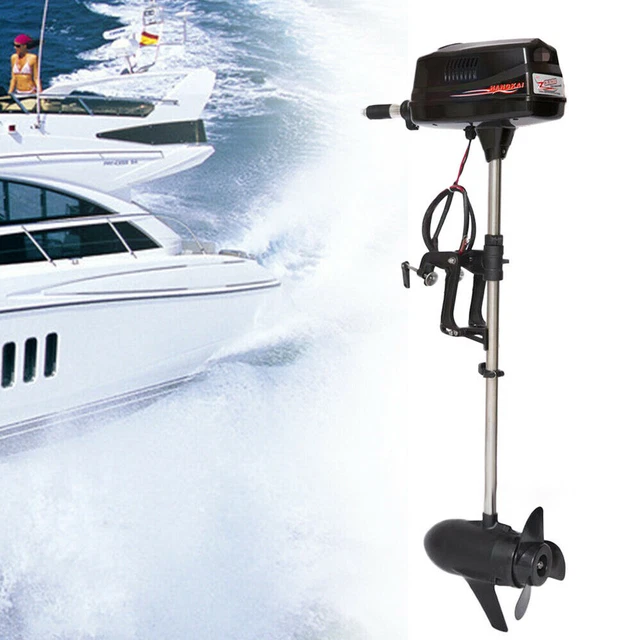 Si vous souhaitez tester le moteur, il doit être fait en rivière., 2., Ne pas utiliser le moteur si l'eau ne sort pas et vérifiez ensuite si la roue de la pompe ou la sortie d'eau est bloquée., 3., Ne pas allumer trop vite. Canoë Decathlon Mercury Présente Son Premier Moteur Hors-bord électrique Moteur Bateau 12V 408W Le timon fixe a 5 vitesses avant et 3 vitesses arrière. La barre principale est en aluminium. En cas de collision avec un objet sous l'eau, le design peut protéger l'hélice qui fonctionne à grande vitesse. Vous pouvez changer la vitesse en continu pendant la conduite et changer de direction. Moteur électrique pour float tube hart drive 380 Dimensions du paquet : 102 x 41 x 16 cm. Vous devriez passer d'une vitesse à l'autre., 4., Assurez-vous que l'interrupteur est en position OFF avant de le connecter à la batterie., 5., Débranchez toujours l'alimentation lorsque vous changez l'hélice, retirez la saleté autour de l'hélice, chargez les piles, transportez un bateau ou lorsque le moteur n'est pas utilisé., 6., N'oubliez pas de toujours débrancher les piles dès que le moteur quitte l'eau, car une hélice rotative peut causer des dommages personnels., 7., L'arc électrique près de la batterie peut allumer le gaz hydrogène et faire exploser la batterie., 8., Veuillez laver le moteur avec de l'eau douce pour réduire considérablement le risque de corrosion., 9., Le moteur à roulettes est recommandé pour la poussée de petits bateaux de moins de 200 kg. 1 disjoncteur 1 borne de batterie., 1 jeu de vis. Son poids léger n'augmente pas le poids total de votre bateau et la difficulté de conduite. Surveillance en temps réel des performances : le haut du moteur dispose d'un affichage en temps réel de la puissance de la batterie, de sorte que vous pouvez vérifier la situation d'alimentation à tout moment et vous préparer à la charge pour éviter de manquer de courant pendant la conduite. Ce moteur hors bord électrique est parfait pour les annexes, les petites embarcations ou encore les zodiacs et voiliers. Il s’installe facilement sur un tableau arrière, ne nécessite aucun entretien particulier et propose un bras court et un bras long pour s’adapter à tous les profils d’embarcation Moteur Bateau HéLice ÉLectrique HéLice Moteur Hors-Bord Moteur... Longueur de la tige : 76 cm. Contenu de la livraison : 1 moteur à roulettes. Le support de suspension est en alliage d'aluminium à haute résistance, ce qui peut garantir que le support ne soit pas déformé par des démontages et des installations répétés. Modèle de batterie : piles 12 V 100 A., Poids net : 7,8 kg., Poids brut : 9,3 kg.