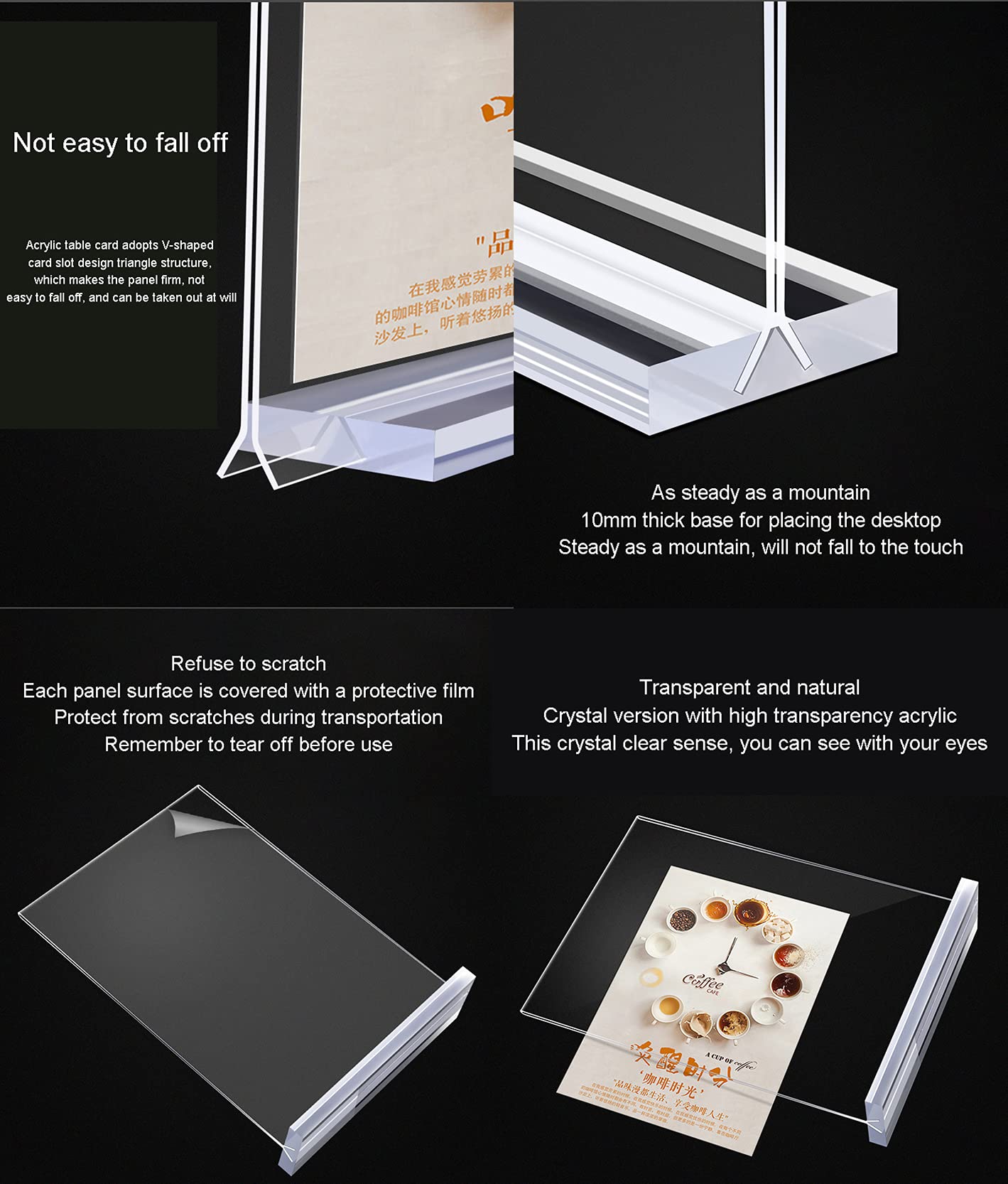 Lot de 18 supports de panneau en acrylique doré avec bordures dorées... d'affichage de carte de table : maintient fermement votre panneau en place, l'empêche de tomber. lisse, sûre au toucher et ne vous blesse pas les mains. Support Panneau Acrylique Léger Présentoir De Table A5: 6 Pièces Porte Affiche A5, Porte Menu Transparente Acrylique, Présentoir A5, Chevalet De Table, Porte Menu Restaurant, Porte Presentoir Pour Menu, Hôtel, Mariage, Cadre Photo Support Panneau Bureau Support en acrylique : support de panneau en acrylique, transparent, permettant aux gens de les détails de votre panneau de loin. hocadon Lot de 12 A6 Présentoirs de Table, Acrylique Transparent... Porte-papier - le support d'affichage en acrylique à base stable maintient solidement votre article en place et l'empêche de tomber. Psentoir De Table A6 Pack De 3 Porte-numros De Table Avec Bordure Dore En Acrylique Support Pour Menu De Table Double Face Transparent Pour Affiche