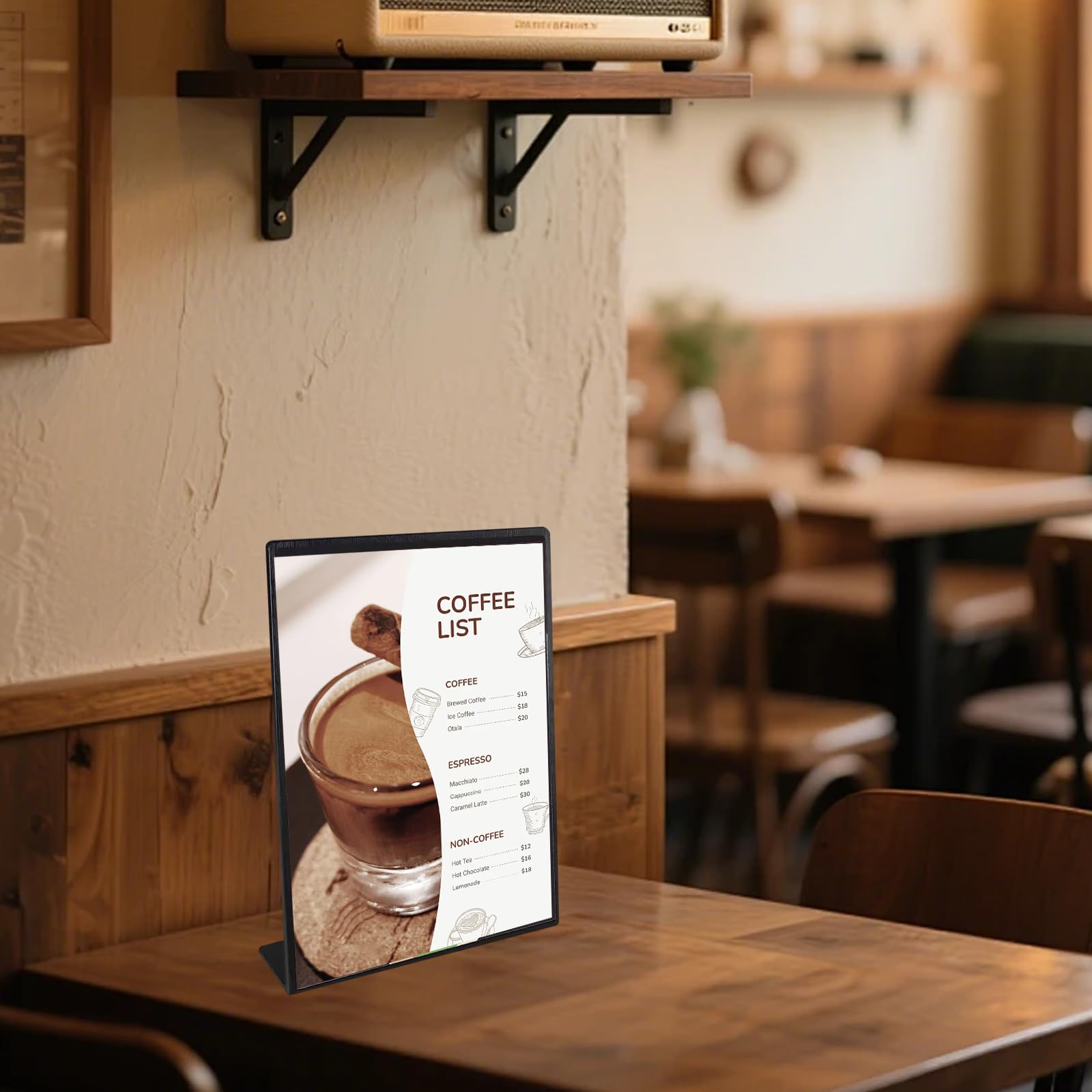 Poids : 280 g/pièce. Porte-affiche Bureau Plexiglas Présentoir De Table A5 Lot De 5 Présentoirs A5 Coriver - Support Acrylique Transparent Forme T - Double Face Pour Menu/Affiche Accessoire Point De Vente Lot Présentoirs Bureau Magasin Transparents Changement facile des menus, des affiches ou des étiquettes de prix grâce à l'ouverture latérale. Support en L stable : dos incliné avec large base en forme de T pour une excellente stabilité (résiste au vent de 1 mph). Format A4 optimisé – Dimensions exactes pour DIN A4 (31 x 21,5 cm / 310 x 215 mm). Aucun montage nécessaire Presentoir buffet 3 pièces en acrylique miroir Fabriqués en plexiglas de 3 mm d'épaisseur (acrylique), ces supports convainquent par leur clarté semblable au verre et leur résistance aux chocs nettement plus élevée. Contenu de l'emballage : étiquette de prix de table en forme de L, affichage publicitaire en plastique, comptoir de bar, table de commande, support d'étiquettes, support de liste de prix, 5 pièces (spécification : (A4) en forme de L, noir x 5 pièces Résistance au vent : 1 mph., Dimensions : 31 x 21,5 cm. Empêche le basculement sur les comptoirs ou les surfaces inégales - Idéal pour les restaurants, les cafés et les foires. Présente des dépliants, des photos ou des offres de manière professionnelle et accrocheuse. Boîte en plexiglas acrylique ECOFAB03 100% RECYCLÉ Casier Et Presentoir Lot 5 Présentoirs Table Acrylique Transparent... Matériau de qualité supérieure. Matériau : plastique + PVC. Transparence semblable au verre pour une lisibilité optimisée des menus ou des dépliants publicitaires tout en assurant une longue durée de vie (durée de vie de 1 à 2 ans) Notre lot de 5 présentoirs de table A4 en acrylique combine fonctionnalité et design esthétique pour les restaurants, les hôtels, les bureaux ou les magasins de détail.