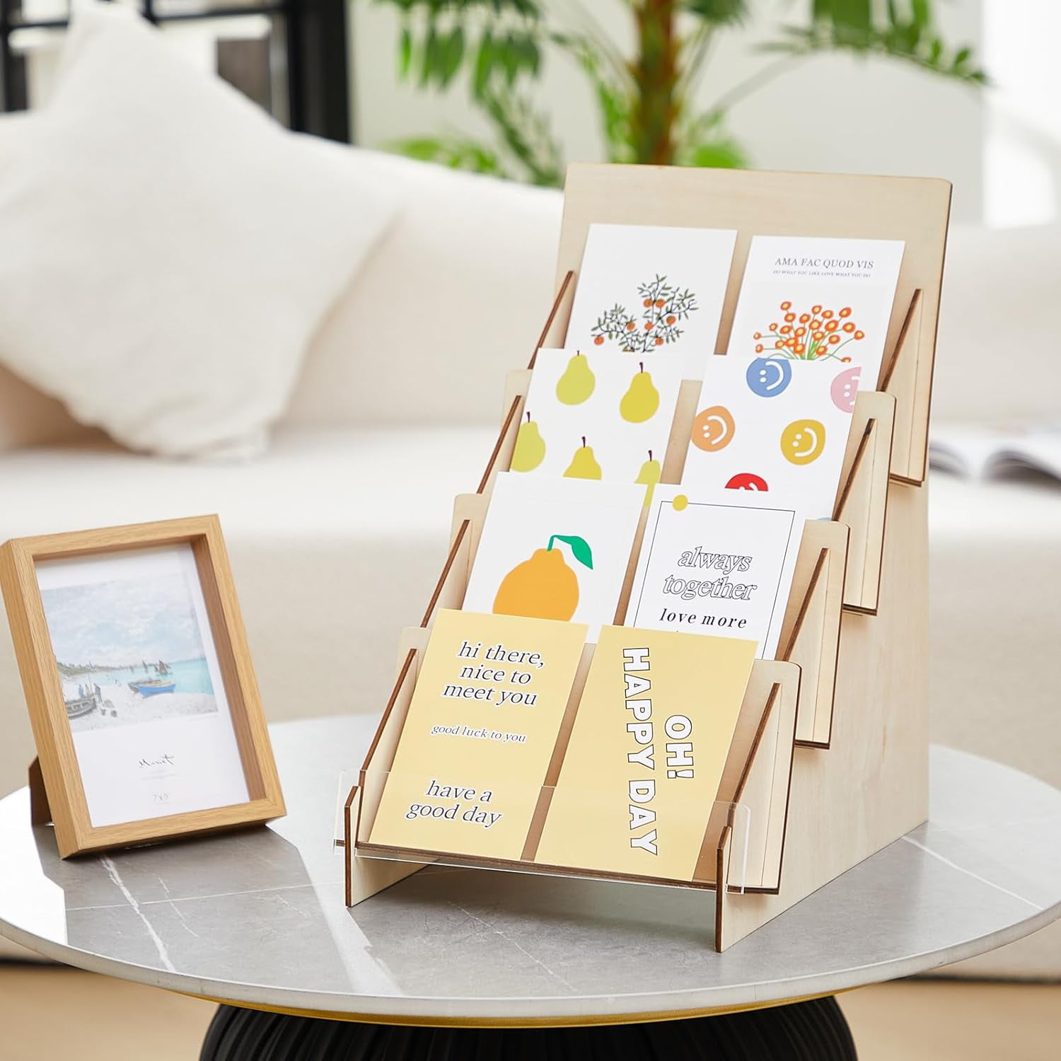 Description du produit Présentoir De Cartes De Vœux Présentoir Adaptable pour Zones à Fort Trafic: Avec ses roues rotatives et ses patins anti-dérapants, le présentoir de cartes postales permet une relocalisation aisée et une placement stable dans des environnements tels que les salles d'exposition et les comptoirs de caisse. La conception robuste permet une utilisation multiple, adaptée aussi bien aux espaces commerciaux qu'à la maison. Sa structure en gradins garantit une visibilité et un accès faciles, ce qui en fait un choix parfait pour la présentation de produits dans des environnements de vente au détail ou pour ranger des objets personnels de manière ordonnée. Il complète harmonieusement les intérieurs rétro ou modernes, offrant une apparence soignée et raffinée sans effort. Outil de Présentation Élégant: Grâce à ses surfaces mates foncées et ses lignes structurelles épurées, ce présentoir pour cartes de vœux assure une présentation qui améliore la visibilité des brochures et photos. Support Gradin Boutique Magasin Présentoir Pour Cartes De Visite - 12 Emplacements - 4 étages - En Présentoir Polyvalent Gerso présentoir pivotant de cartes 12 motifs 130x180mm paysage pour comptoir présentoir de En raison des différentes mesures manuelles, veuillez prévoir une différence de taille de 1 à 2 cm. L'organisateur de cartes de vœux est une étagère polyvalente à quatre niveaux conçue pour rationaliser les présentations en magasin et sur les comptoirs tout en améliorant l'organisation pour les vendeurs et les commerces. Solution d'Installation Rapide: Doté de cadres détachables et de connecteurs à encliquetage pratiques, ce présentoir de cartes de vœux permet un montage en trois étapes fluide et . Le présentoir pour cartes de vœux est équipé de roulettes pivotantes à 360°, silencieuses et résistantes à l'usure, permettant un réglage facile de la position d'affichage. Que ce soit dans un bureau, un magasin ou un hall d'exposition, vous pouvez déplacer et présenter vos supports promotionnels sans effort Spécification Nom : présentoir de cartes. Accessibilité des Cartes: Ce présentoir de cartes de vœux intègre un système d'étagères en escalier et multicouches pour une placement stable des articles. Indispensable pour une mise en scène réussie, il met en lumière vos supports avec style et s'adapte à divers environnements pour une atmosphère élégante et accueillante. Gerso présentoir pivotant de cartes 18 otifs 130x180 ixte pour... Le gain de place et la rapidité de mise en place contribuent à une meilleure gestion des rayons et à une augmentation de l'efficacité opérationnelle en période de pointe, sans néce Il facilite l'organisation et la récupération des cartes ou des petits bijoux dans les boutiques, offrant une accessibilité pratique et une fonctionnalité fiable. Optimisez votre stratégie d'affichage avec cet organisateur fonctionnel, conçu pour répondre à divers besoins organisationnels sans compromettre le style ou la praticité.