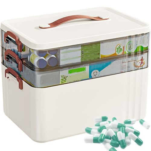 La répartition spatiale des compartiments vous permet de ranger efficacement tous vos outils médicaux. La grande boîte à pharmacie est la solution parfaite pour le stockage ordonné et sûr des médicaments et des outils médicaux. Avec ses dimensions de 33 x 18 x 13 cm, cette boîte en métal robuste offre suffisamment d'espace pour tous vos besoins médicaux et s'adapte parfaitement à différents environnements, tels que les maisons, les bureaux, les voitures et pendant les activités de... 4 compartiments pour une organisation optimale : l'organiseur d'armoire à pharmacie 4 compartiments séparés permet de trier et de trouver facilement différents articles médicaux. L'organisation claire vous permet de trouver rapidement ce dont vous avez besoin et de garder vos médicaments à portée de main. Boite Pharmacie Grande Taille Theo&Cleo - Boîte à Médicaments, Grande, Trousse De Premiers Soins, Boîte à Médicaments, XXL, Style Vintage, Vert Foncé Boîte à Pharmacie Métal Grande La boîte résiste aux plis et aux déformations, de sorte que vos médicaments et objets médicaux sont toujours stockés en toute sécurité. Matériaux métalliques robustes : La boîte est fabriquée en métal de haute qualité, résistant à la rouille, solide et durable. Construction en métal robuste : la boîte de rangement pour médicaments est fabriquée en métal de qualité supérieure, résistant à la rouille, solide et durable. Poignées latérales portables : deux poignées latérales robustes et portables vous permettent de transporter la boîte à pharmacie facilement et confortablement. Nombreuses utilisations : cette boîte de rangement multifonctionnelle est idéale pour le stockage de médicaments, piluliers, pansements, bandes et autres articles médicaux. Qu'il s'agisse de pansements, de rubans, de médicaments, de pilules ou de tampons, chaque compartiment est assez grand pour accueillir une variété de petits objets. Elle offre suffisamment d'espace pour les pansements, les bandes, les médicaments, les pilules et même les tampons. Boîte à pharmacie blanche et rouge 4 compartiments pour un tri facile : Le plateau amovible avec 4 compartiments séparés facilite le tri et la recherche de différents objets. Elle s'intègre parfaitement dans n'importe quel environnement, que ce soit dans la salle de bain, la chambre à coucher, le salon ou le bureau. Boîte à pharmacie boîte de trousse durgence familiale plastique