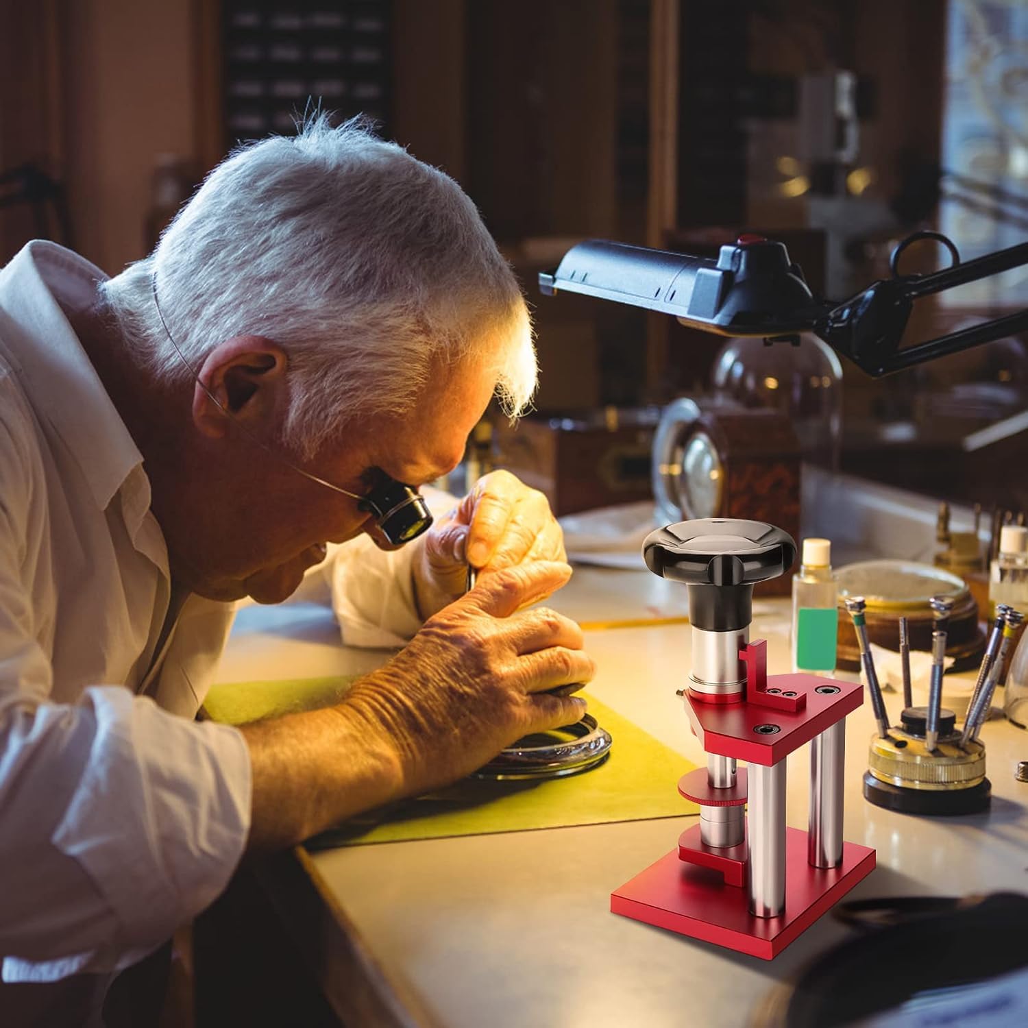 Grossiste de montre en métal or à cadrage noir avec chronographe et * Facile à utiliser : le processus simple consiste à sélectionner le bon type, à positionner la montre avec précision et à appliquer progressivement une pression avec la poignée rotative, ce qui la rend accessible même pour les débutants. Outil Presse Montre Métal Kit De Presse De Montre Professionnel Avec 20 Matrices Pour Fermer Les Presse Montre Changement Pile *Compatibilité polyvalente : cet ensemble de presse à montres comprend 18 matrices différentes, ce qui le rend adapté pour les dos de montre ronds et carrés, répondant ainsi à une large gamme de réparations de montres et de remplacement de piles. Outil De Presse De Montre Watch Press Tool Kit Set Back Case Remover... Outil de réparation outil presse montre avec 12 matrices(NOIR) En Stock... Design en métal robuste : fabriqué à partir de métal avec 18 matrices en plastique ABS, cet outil de presse est conçu pour résister à une utilisation régulière tout en maintenant une performance constante au fil du temps. * Solution de réparation efficace : bon pour les amateurs de montres et les professionnels, cet outil simplifie le processus de réparation, permettant un entretien rapide et efficace des montres tout en assurant un maintien sûr de la coque arrière. Compatibilité avec plusieurs dos : le lot comprend 18 matrices différentes, ce qui le rend adapté pour les fermoirs de montre ronds et carrés, répondant à une variété de besoins de réparation et de remplacement de batterie. * Design robuste : fabriqué à partir de métal massif avec 18 matrices en plastique ABS, cet outil de presse de montre est conçu pour durer et fiabilité, il résiste à une utilisation régulière sans compromettre les performances. Caractéristiques : * Nom du produit : ensemble d'outils de presse de montre., Matériau : métal., Dimensions : 9,5 x 9,5 cm., Couleur : argenté. Caractéristiques : * Contrôle précis de la pression : l'outil de presse de montre permet une application de pression sans effort en tournant la poignée supérieure, permettant aux utilisateurs de régler finement la pression pendant le fonctionnement, ce qui minimise le risque d'endommager le verre de la montre.
