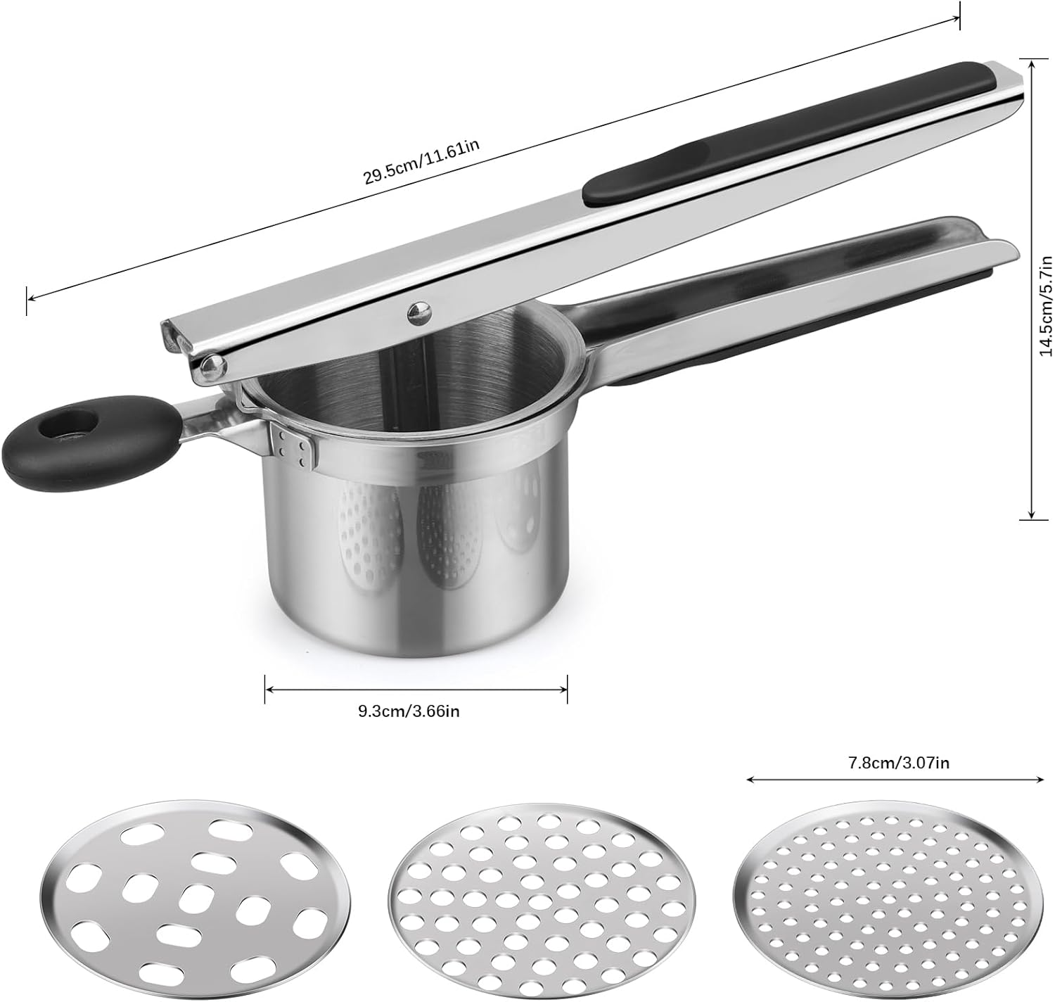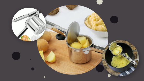 Nettoyage facile : Potato Masher se rince rapidement sous l'eau courante grâce à la surface lisse en acier inoxydable ou se nettoie facilement au lave-vaisselle Grande surface de pilotage de 12 cm pour écraser efficacement même de grandes quantités. Presse-purée Inox Presse-purée Presse-purée En Acier Inoxydable, Presse-purée Pour Purée Crémeuse, Purée De Pommes De Terre, Légumes Et Fruits - Maison Presse-purée Manuel Construction robuste pour une utilisation durable dans la cuisine Ustensile de cuisine multifonction : idéal pour la purée de pommes de terre, les carottes, les citrouilles, les bananes et les légumineuses. Duo Presse-purée à Levier Et Fourchette 3 Dents Pour Pommes De Terre F terre 3/ Passez les pommes de terre dans un presse-purée manuel. ... pour une texture parfaite, vous pouvez passer votre purée au tamis. C... Contenu de l'emballage : 1 presse-purée et 1 éplucheur. Nettoyage facile : Potato Masher se rince rapidement sous l'eau courante grâce à la surface lisse en acier inoxydable ou se nettoie facilement au lave-vaisselle Caractéristiques techniques : - Matériau : acier inoxydable. La poignée horizontale innovante permet de tasser sans effort avec un minimum d'effort La poignée horizontale innovante permet de tasser sans effort avec un minimum d'effort. - Dimensions : environ environ 11 x 3 x 16 cm. Design ergonomique : poignée large antidérapante avec finition caoutchoutée pour une utilisation confortable avec les deux mains.