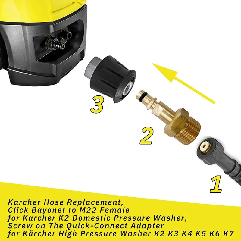 Raccords de nettoyeur haute pression Raccord de pistolet à eau de lavage de voiture Adaptateurs Matériaux adaptateurs] Fabriqué en laiton de qualité supérieure et ABS, ces adaptateurs sont robustes, résistants à la rouille et à la lumière. · [Détails... Adaptateur Laiton Durable Lot De 2 Adaptateurs De Pistolet Pour Nettoyeur Haute Pression Avec Prise Rapide 14 Compatible Avec Les Nettoyeurs Haute Pression Karcherkarcher K Serie K2 K3 K4 K5 K6 K7 92077192 Accessoire Nettoyeur Karcher K3 K5 Adaptateur de pistolet pour nettoyeur haute pression - Avec prise rapide 1/4 - Compatible avec les nettoyeurs haute pression Karcher/Kärcher K Serie K2, K3, K4, K5, K6, K7 Laiton intégré de haute qualité, durable, robuste, pas facile à casser, pas rouillé. Adaptateur de pistolet pour nettoyeur haute pression, avec prise de raccordement rapide 1/4, compatible avec les nettoyeurs haute pression Karcher/Kärcher... Grande compatibilité : compatible avec le pistolet nettoyeur haute pression Kärcher K2, K3, K4, K5, K6, K7., (Ne convient pas pour K1700, K1700 CUBE, K1800, K1900, K2000) 💙Connexion facile : une extrémité de l'adaptateur pistolet de nettoyeur haute pression qui peut être connecté aux embouts de buse de nettoyeur haute pression ou au canon à mousse avec prise de 6,35 mm. 💙Qualité durable : l'adaptateur est composé d'une douille en laiton fabriquée à partir d'un raccord rapide et d'un plastique robuste. Et l'autre extrémité est insérée dans le pistolet et tournez le connecteur dans le sens des aiguilles d'une montre.