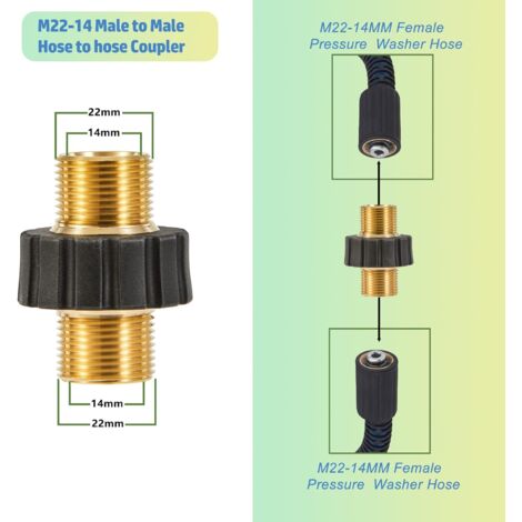 Nettoyeur Haute Pression Femelle à Dégagement M22 - 14 à 1-4 Mâle[877 M22-14 Ensemble d'adaptateurs pour nettoyeur haute pression... Raccord Laiton Haute Pression Adaptateur De Nettoyeur Haute Pression, M22 Mâle, Coupleur à Connexion Accessoire Pistolet Peinture Nettoyeur Description du produit Fai Top Ensemble d'adaptateurs pour laveuse haute pression Note de réchauffement :L'ensemble d'adaptateurs pour nettoyeur haute pression a un raccord de 14mm et non de 15mm. Le kit mâle-femelle a été fabriqué avec un processus de précision, les coupleurs de remplacement élevé fournissent des raccords sûrs et rapides, faciles à connecter et à déconnecter. Fai Top Raccord Rapide Haute Pression pour Pistolet et Nettoyeur Haute... Conçu pour le tuyau du nettoyeur haute pression, la pompe du nettoyeur haute pression, le pistolet du nettoyeur haute pression, facile à monter et à démonter. Le paquet inclut : 1 x coupleur pour nettoyeur haute pression : M22-14 pivotant femelle + 1/4 plug Raccordez le filetage mâle M22 au pistolet du nettoyeur haute pression et le filetage femelle M22 à la lance. 1 x coupleur pour laveuse à pression : déconnexion rapide 1/4 + M22 mâle