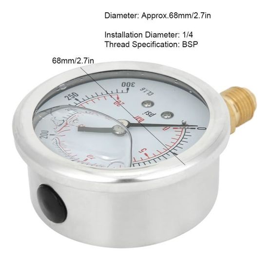 EJ.life Jauge à vide Manomètre à VideTS PGGZ60Z4 0bar 1 4BSP Y60... Le manomètre radial comprend une échelle très visible avec des gammes de deux mesures (-1-0bar et -30-0inhg), garantissant des lectures précises pour les applications de vide et de pression dans les environnements pétroliers, métallurgies et industriels Vikye Jauge De Pression Radiale, Jauge De Pression à Vide ManomèTre, 1/4BSP Y60 ManomèTre à Vide à Injection D'Huile Axial Usage Industriel, Avec Qualité