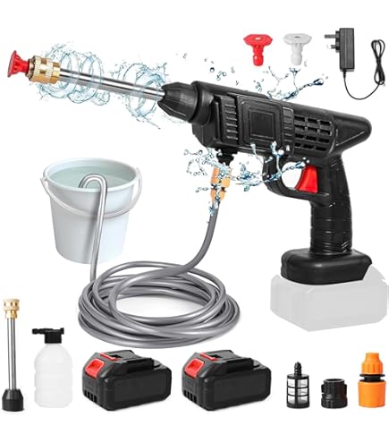 La buse pivotante facilite le réglage de l'angle, ce qui vous permet de nettoyer facilement les coins. 🏡【Applications étendues】 : Grâce à sa conception sans fil et portable, ce nettoyeur haute pression s'emporte sans effort partout où vous en avez besoin. Il peut nettoyer non seulement les voitures, mais aussi les maisons, les trottoirs, les parcs, les murs, ainsi que les zones et les coins difficiles à atteindre. Avec des modes réglables (0°, 15°, 25°, 40°, douche, mode pulvérisation), il nettoie sans effort différentes surfaces. Achetez Hortensus Nettoyeur haute pression 3-en-1 Installez-le en une minute et améliorez votre expérience de nettoyage ! 🛠️【6 en 1 Nettoyeur haute pression sans fil】 : Notre nettoyeur haute pression sans fil 6 en 1 est parfait pour toutes les tâches ! Nettoyeur Haute Pression à Batterie, ax 120 Bar, Pulvérisateur de... Par conséquent, vous pouvez recevoir une petite quantité de résidus d'eau dans le produit, c'est un phénomène normal après le test, et n'affectera pas la performance du produit, j'espère que vous pouvez comprendre. Parfait pour nettoyer les voitures, les jardins, les patios et plus encore, rendant chaque tâche plus rapide et plus efficace. Il peut tirer de l'eau de n'importe quelle source, éliminant ainsi le besoin de se soucier d'avoir accès à un tuyau d'arrosage. Nettoyeur Portable 600 PSI 2 Batteries Nettoyeur Haute Pression Sans Fil, 5L/Min, 20Bar, Batterie Incluse, Tuyau 5M, Lavage Et Arrosage De Voiture Pistolet Haute Pression Nettoyeur Haute Pression,60 Bar Nettoyeur Haute Pression sans Fil... 💡【Conseils sur la chaleur】 : Pour s'assurer que les produits sont en parfait état avant de quitter l'usine, tous les produits sont testés à 100% en termes de performance.
