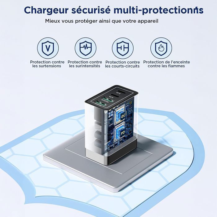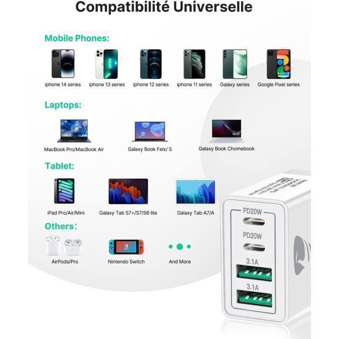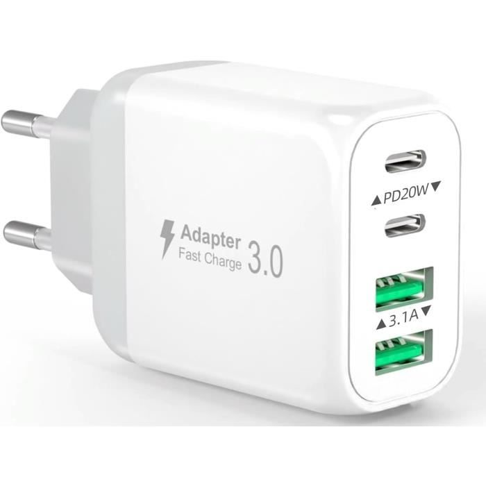 Restez connecté à vos appareils, peu importe où la vie vous mène Chargeur USB 40W 3 Ports Chargeur USB Multiple, 4-Port Prise USB 40W QC 3.0 Bloc Chargeur Rapide Chargeur Multi Usb Fnac Notre bloc de charge USB offre une charge à grande vitesse jusqu'à 40 W. Chargeur blanc de type C, chargeur mural USB 40 W à 3 ports | Chargeur mural USB double PD, Station de charge USB Portable, accessoires électroniques pour Smartphone, tablette, ordinateur Portable Avec des capacités d'économie de batterie et une livraison efficace, notre chargeur vous aide à gagner un temps précieux et à rester alimenté où que vous soyez Charge sûre: notre bloc de chargeur USB a le dos avec des fonctionnalités de sécurité intégrées qui protègent contre la surcharge, la surchauffe et le court-circuit. Meilleur rapport qualité-prix : L'adaptateur secteur 5V 2A (0.66$/unitée) convient aux environnements à budget serré. · Haute performance : Le... Charge rapide: équipée d'une charge rapide et de technologies de performance stables, notre chargeur USB offre une charge à grande vitesse ultra-rapide et fiable pour les appareils compatibles. Son système de détection intelligent fournit le courant optimal pour vos multiples gadgets, ce qui en fait une solution idéale. Bon en compatibilité: offrant des capacités de charge efficaces, ce bloc de chargeur USB est la solution idéale pour vos multiples gadgets. 40W Chargeur iPhone Rapide, Bloc Prise USB C PD25W & QC3.0 pour iPhone Charge de périphérique efficace: notre bloc de chargeur USB possède une sortie totale de 40 W et dispose de 2 ports USB C PD et 1 port USB-A QC. Carry facile: avec une conception petite et légère.