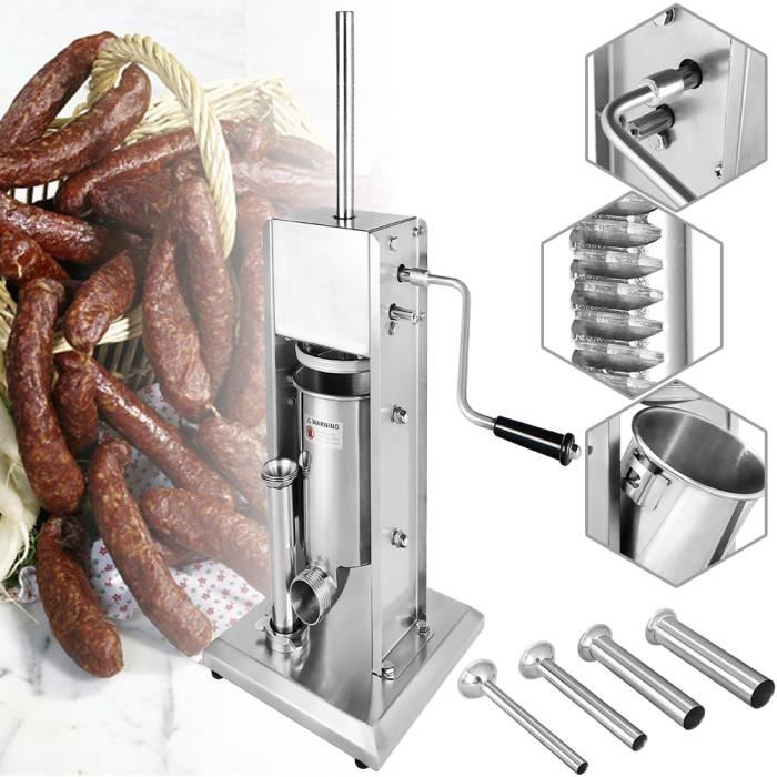Entonnoir polyvalent Avec les 4 entonnoirs différents, vous pouvez faire des saucisses de différentes tailles et styles. Machine Kolbasa Hot Dogs Machines à Saucisses | Le Pro De L'Équipement Machine Pour Saucisses Matériau de haute qualité : le remplisseur de saucisses est fabriqué en aluminium durable, à la fois robuste et facile à nettoyer Polyvalence : L'appareil convient à une variété de types et de tailles de saucisses. Avec cette machine, vous pouvez contrôler la qualité de vos ingrédients et ajouter une touche personnelle à vos saucisses. Entonnoir polyvalent : avec les 4 entonnoirs différents, vous pouvez faire des saucisses de différentes tailles et styles 4L Poussoir à Saucisse Machine à saucisses Viande hachée 4xTubes ( 15 Avec cette machine robuste, vous pouvez faire vos saucisses préférées selon vos préférences individuelles, que ce soit des saucisses frites, de Cracovie ou d'autres variations. Facile à utiliser et construction robuste L'opération manuelle fait de la saucisse un processus sans effort. Grâce à la facilité d'utilisation et au dosage précis de l'aliment, vous obtiendrez des saucisses parfaites selon vos goûts personnels. La machine de remplissage manuelle de saucisses est le choix idéal pour les cuisiniers amateurs qui veulent fabriquer leurs propres saucisses. Facile à utiliser : le design ergonomique et le mécanisme facile à utiliser font du remplissage des saucisses un plaisir simple Fixation solide grâce à des pinces pour une utilisation stable et antidérapante. Comprend 4 tubes pour une épaisseur de saucisse personnalisable. Capacité de 1,5 kg pour un fonctionnement efficace et continu. Cylindre en acier inoxydable pour une durabilité optimale. Manipulation facile grâce à une simple manivelle InciFuerza achine à saucisses anuelle avec 3 buses pour restaurant... Avec une capacité généreuse de 1 kg, cet appareil permet de réaliser facilement des saucisses cuites individuellement dans votre propre cuisine. Les 4 entonnoirs de différentes tailles fournis permettent une utilisation polyvalente, des saucisses fines aux saucisses de terre puissantes. Avec un levier souple, vous pouvez remplir la pâte à saucisse avec précision dans les boîtes, ce qui garantit une manipulation facile. Machine à saucisses 1 kg avec ventouse et 4 entonnoirs Le remplisseur de saucisses en aluminium de haute qualité est l'outil idéal pour tous les amateurs de saucisses maison et de viandes délicates.