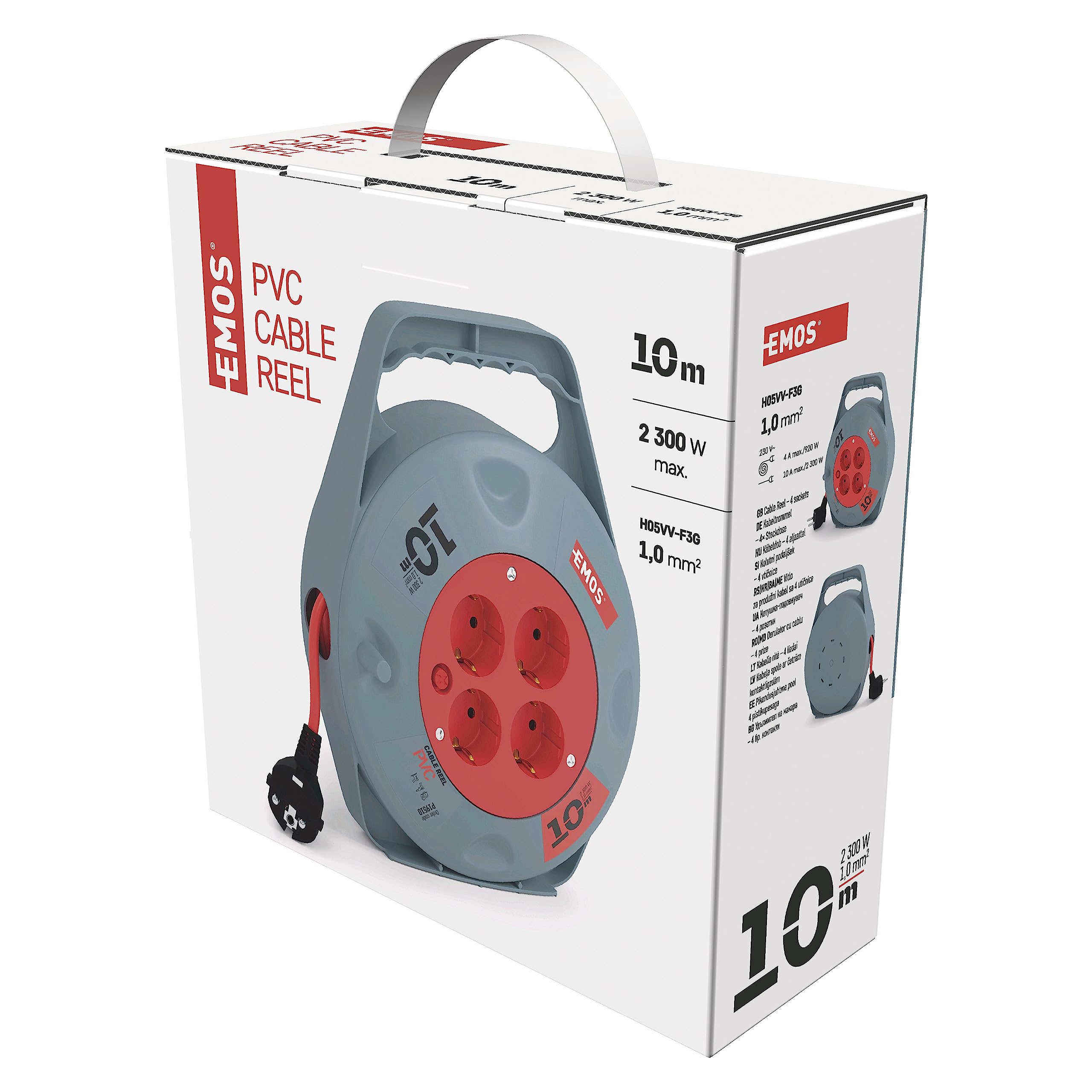 Convient pour une utilisation en France, en Pologne, en République tchèque, en Slovaquie ou en Belgique Enrouleur EMOS 2300W Emos Enrouleur De Câble Professionnel 40 M Avec 4 Prises Schuko 1,5 Mm Câble PVC 1.0mm² L'enrouleur de câble dispose d'une poignée ergonomique qui garantit un enroulement et un déroulement faciles. PROLONGATION DE COURANT DE 10M : Ce rouleau de câble léger de 10m de long avec 4 prises au standard français assure également une alimentation électrique flexible et sûre grâce à sa construction en PVC de haute qualité (EMOS P19410N Chaque enrouleur de câble se caractérise par des caractéristiques particulières telles que différentes longueurs, types de protection et matériaux pour répondre aux besoins spécifiques des utilisateurs. EMOS poursuit la devise « Making Life Easy ». VELAMP DOMREEL-10 Enrouleur électrique domestique 10m, H05VV-F3G1.0MM2... Pour le câble enroulé, la charge totale ne doit pas dépasser 920 W. La puissance nominale de 2300 W grâce au câble épais de 1,0 mm² avec isolation en PVC permet le fonctionnement simultané de plusieurs appareils électriques. Cela se reflète dans le développement de produits pratiques et fiables qui facilitent la vie quotidienne. Rallonge Electrique Enrouleur de 4 Prises 25m Ne connectez pas d'appareils avec une charge totale supérieure à 2300 W lorsque le câble est complètement déroulé. Version française : le produit est fabriqué selon la norme française, donc ne convient pas aux besoins Schuko