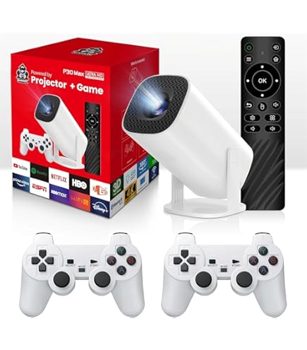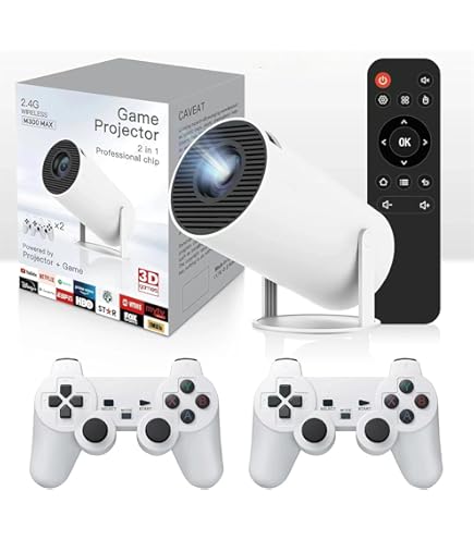 HCS350 Pro Projecteur et jeu, rétro 4K Smart Game Projector 1980 x 1080p 36000 jeux intégrés, jeu vidéo portable avec 2 manettes sans fil, WiFi 5G, Bluetooth, HDMI, Android 12, home cinéma, bureau 【Correction automatique de la distorsion trapézoïdale】: correction Keystone en un clic, ajustez facilement l'image projetée sans réglage manuel. Le support réglable à 180° permet au projecteur de s'adapter à différents angles de vue, adapté pour le cinéma maison, le bureau ou les scènes extérieures. Console Jeu Portable Manettes Sans Fil HCS350 Projecteur Professionnel Et Jeu, 64 Go, Projecteur De Jeu Max Projector Review 【Expérience Home Cinéma 4K/720p】: prend en charge la lecture vidéo 4K et la résolution native de 1280 x 720, équipé d'une fonction de zoom de 50 % et d'un contraste dynamique élevé, offrant des effets visuels clairs et choquants, et un fonctionnement ultra silencieux de 25 dB pour garantir une visualisation sans perturbation. Projetez vos jeux en 4K avec le projecteur portable HCS350 Max. Équipé de haut-parleurs intégrés et du système Android 11, il offre une expérience immersive pour votre cinéma maison 【Cadeau de vacances】Le cadeau parfait pour les joueurs et les familles à Noël : offrez le cadeau ultime d'un projecteur avec plus de 30 000 jeux classiques et modernes tout en un, parfait pour les amateurs de jeux rétro et le plaisir en famille. Projecteur 4K Wifi 6 pour Touristes: Puissant et Intelligent. - Test et Avis