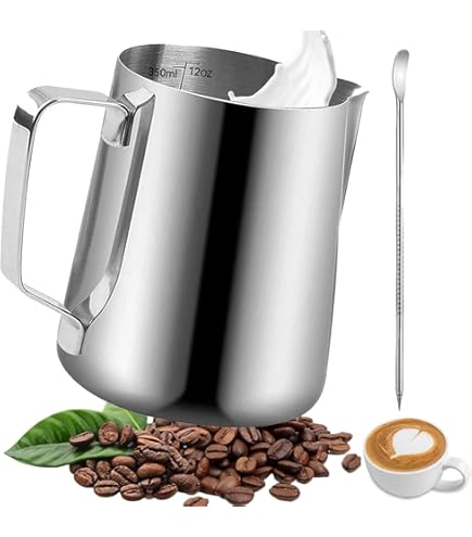 Mousseur à lait - ANAWAKIA - Pichet à lait Inox - 600 ML Pichet à Lait Inox équipement Café Professionnel Pichet à Lait Barista 150ml En Acier Inoxydable LATRAT - Pour Cappuccino, Latte Et Expresso Pot Lait Inox Pichet Delonghi Ce pichet à lait en inox de 600 ML est idéal pour faire mousser du lait ou de la crème pour vos cappuccinos et lattes. Sa conception avec bec verseur spécial permet un service précis sans éclaboussures. Fabriqué en acier inoxydable de qualité alimentaire, il allie durabilité et fonctionnalité Poignée large pour éviter les brûlures. 150ml)Pichet à mousse de lait en acier inoxydable, expresso, café à la... Le pichet à mousse de lait est un accessoire indispensable pour le café à faire soi-même, à la maison ou au restaurant. Pot à mousse de lait en acier inoxydable pour le café, la mousse de lait et autres.