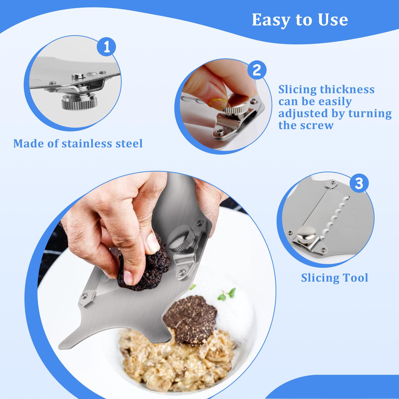 Trancheuse à truffe, trancheuse professionnelle en acier Lorsque vous estimez que la trancheuse en acier a besoin d'être lavée, il suffit de la jeter dans l'évier et de la rincer à l'eau ou au lave-vaisselle. Rapeuse Legume Trancheur De Truffes Professionnelle Lame D’acier Inoxydable Mandoline A Truffe 【Facile à nettoyer】 Réutilisable, durable et léger, va au lave-vaisselle et facile à nettoyer. Matériaux de haute qualité] Fabriqué en acier inoxydable 18/8, de haute qualité, anticorrosion, anti-rouille et plus de sécurité, robuste et durable pour une utilisation à long terme. Vous pouvez également tourner la vis à molette pour régler facilement la position de la lame. ① Trancheuse à truffe réglable fabriquée en acier inoxydable... Trancheur de Truffes Professionnelle Lame D'acier Inoxydable Tranchante Réglable Trancheur à Fromage Légumes Fruits Éplucheur Ustensiles de Cuisine Truffe Champignons : : Cuisine et MaisonÀ propos de cet article [Facile à nettoyer] Réutilisable, durable et léger, va au lave-vaisselle et facile à nettoyer. Lorsque vous estimez que la trancheuse en acier a besoin d'être... 【Matériaux de haute qualité】 Fabriqué en acier inoxydable 18/8, de haute qualité, anticorrosion, anti-rouille et plus de sécurité, robuste et durable pour une utilisation à long terme. 【Apparence élégante】Ajoutez facilement des boucles de chocolat délicates pour décorer des produits de boulangerie, des recettes de desserts, du chocolat chaud, des boissons à base de café et des boissons surgelées. Vous pouvez également tourner la vis à molette pour régler facilement la position de la lame. Taille : 19,5 x 8 x 3cm / 7,68 x 3,15 x 1,18 pouces (appr., ), Liste du paquet :, 1 x Rasoir à chocolat Il permet de trancher le chocolat en bloc, les truffes et les fromages, du papier fin à d'autres épaisseurs variées en un tour de main. Matériau : Plaque d'acier inoxydable + bois, Couleur : argenté