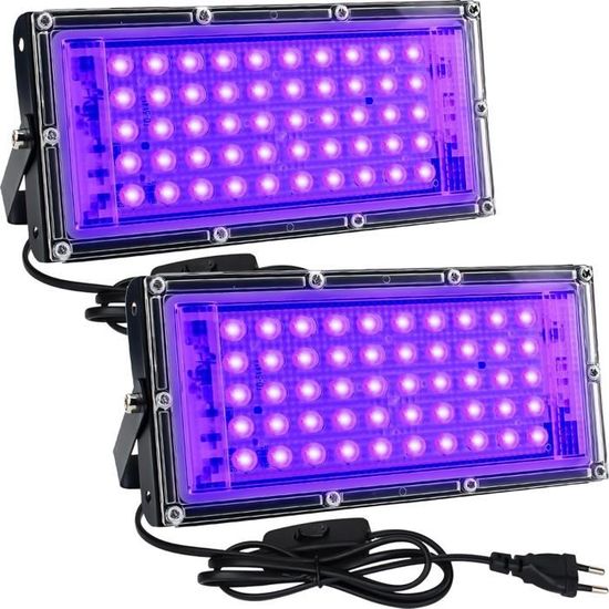 Le support réglable à 180° offre des méthodes de montage flexibles et répond à vos différents besoins d'éclairage d'angle. Découvrez un éclairage UV professionnel avec notre UV lumière bar, longueur d'onde de 395-400 nm (niveau UVA), sans danger pour les yeux et la peau humains, respectueux des enfants et des animaux domestiques. éclairage Fluorescent Fête Lumière Noire Led,Projecteur Uv Led 100W 395Nm Lampe Uv Lumiere Noir Pour Halloween Noël Soirée DJ Scène Fosingut Lumiere Noire Led 50W, Puissant Projecteur UV LED avec Prise,395-400nm Etanche Noire Lampe Extérieur pour Fête Néon,Fluo Peinture Corporelle,Scène... 👑【Effet fluorescent tendance】Lumiere UV créent une atmosphère envoûtante en faisant briller la peinture réactive aux UV,les tiges fluorescentes et autres matériaux fluorescents visibles dans le noir. Aident à dissiper efficacement la chaleur, garantissant une durée de vie extrêmement longue. 👑【Projecteur lumière noire avec Prise】100W Projecteur UV LED avec 144 perles de lampe LED UV de haute qualité et un angle d'irradiation de 120°, émet une puissante lumière noire couvrant une grande surface. (L'interrupteur n'est pas étanche). 👑【Économie d'énergie et durabilité】Notre Projecteur Led UV Extérieur est conçue avec un dissipateur thermique à ailettes pour une dissipation thermique plus rapide et une durée de vie prolongée. Efficacité de conversion d'énergie LED améliorée, basse température de chauffage, aucun rayonnement stroboscopique électromagnétique. 👑【IP65 Étanche】L'lumière violette de fête étanche est la solution d'éclairage intérieure et extérieure idéale. L'appareil est-il nocif pour les yeux ? Il s'agit d'une lumière UV-A (longueur d'onde : 395-400 nm), sans danger pour les yeux et la peau. Puissant 100W LED Lumière Noire]Lumière noire uv 100W utilise des puces SM2835 avec 96 perles de lumière noire de haute qualité et d'économie d'énergie, angle de faisceau large de 120 °, chaque projecteur uv super puissance 100W peut couvrir une zone jusqu'à 1020sqft, adapté pour les salons spacieux, les cours et les fêtes en... Avec son abat-jour en tissu, la lumière noire projecteur UV LED offre une lumière vive mais douce, sans éblouissement, durable, résistante aux chocs, au gel et à la chaleur. Chaque lampe LED ultra violet de 100 W peut couvrir une surface allant jusqu'à 1020 pieds carrés, ce qui la rend idéale pour les salons spacieux, les cours, les clubs, les scènes, les fêtes en plein air et la décoration de festivals. Prise européenne standard avec câble de 1 mètre, portable et sûre. Ampoule - led,Projecteur UV LED avec prise UE,lampe de scène