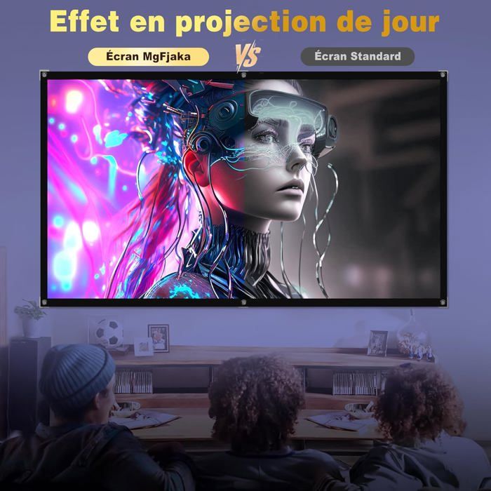écran Mat Gain +1 4K 1080p DPS50 4/3 Ecran De Projection TV Et Home Cinema Pour Bureau De- -fr écran Bureau Home Cinema Le modèle DPS50 est également disponible en format 4:3. Écran de projection fixe, 122 pouces, 16:9, 286 cm, 168 cm, Gain 1 Que vous prévoyiez de créer un home cinema ou de l'utiliser dans un cadre professionnel, notre écran répond à tous vos besoins. Lorsque vous ne l'utilisez pas, vous pouvez le ranger dans son boîtier compact de 120 x 6 cm. Notre écran est fabriqué en PVC, avec une finition mate et un gain de +1 pour augmenter la luminosité, même dans des environnements moins sombres. Le DPS50 peut être déroulé et enroulé en quelques secondes à l'aide de la poignée fournie, offrant une utilisation simple. L'intérieur de l'écran est doublé en noir pour empêcher la lumière de passer à travers, offrant des images nettes et contrastées. Idéal pour les salles de conférence, les salles de classe ou à la maison, nos gammes d'écrans de projection sont disponibles en différentes tailles, de 40 pouces à 100 pouces en formats 4:3 et 16:9., Quel que soit le projecteur frontal que vous possédez, notre écran de projection DPS50 est la solution parfaite pour une expérience visuelle exceptionnelle. Ajoutez cet écran de qualité à votre espace dès aujourd'hui et transformez votre divertissement à domicile. SFPS100 16:9 Ecran de Projection vidéoprojecteur 100 Pouces To- -fr