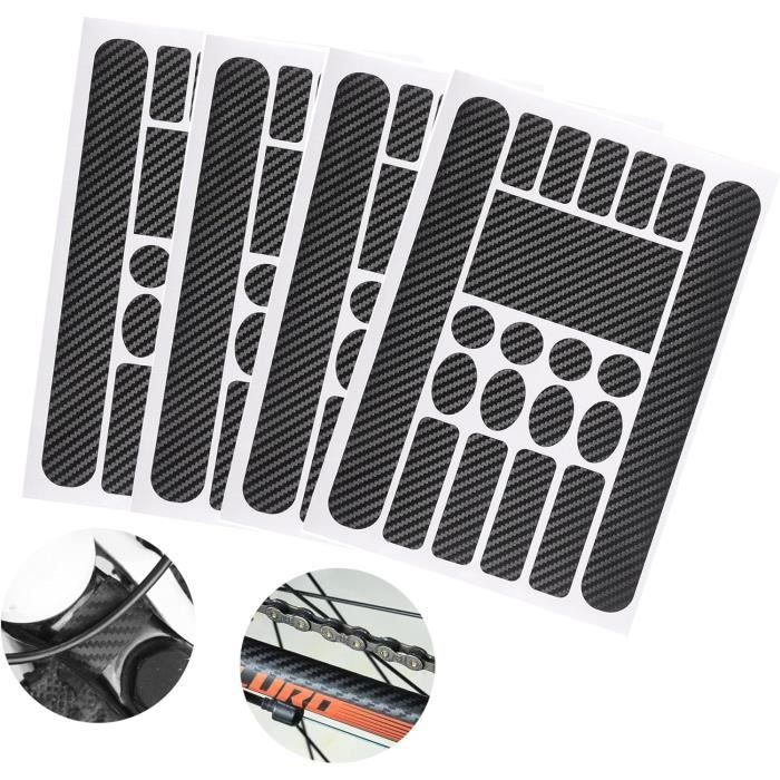 JANTE - ROUE,Autocollants de Protection pour cadre de vélo de route et Achète en ligne des protections en VINYLE pour les vélos de VTT, protège tout ton vélo et oublie les rayures. Disponible en transparent mat et brillant Autocollant Protection Cadre VTT Protection Cadre Vtt Kit Protection Cadre Vélo AlphaShield K099 - Film Autocollant Noir Carbone - 28 Pièces Universel Guidon Vtt Autocollant Protection Vtt Matériau de haute qualité : notre film de protection en PVC de haute qualité pour cadre de vélo est résistant aux chocs, aux températures élevées, à la lumière et a une longue durée de vie. Ils offrent non seulement une protection, mais aussi un style et une personnalité uniques. Description du produit Caractéristiques : * Fabriqué en matériau et pratique. Caractéristiques : *Nom du produit : autocollant de protection de chaîne de cadre. *Matériau : PVC. *Style : motif carbone. *Taille : les formes ovales/rondes sont adaptées à toutes les zones qui doivent être réparées. La bande ovale est adaptée pour les protège-chaînes, les tubes de descente, etc... Grâce à leurs bonnes propriétés adhésives, ils adhèrent solidement aux surfaces lisses sans nécessiter de colle supplémentaire et ne se détachent pas facilement. Protection du cadre : ces patchs offrent une couche de protection supplémentaire qui protège le cadre de votre vélo contre les rayures, les éraflures et les chocs. Application large : notre film de protection pour cadre de vélo convient à la plupart des vélos, VTT et vélos de course. Ils réduisent les effets des rayures et de l'usure, ce qui permet à votre vélo d'avoir toujours un bel aspect.
