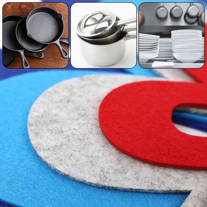 Protection Plan De Travail JOYUE Protection Casseroles Et Protège-Poêle, 15 Pcs Feutre Rembourré Imprimé Premium Coussinets D'intercalaire Séparé Et Protéger Les Surfaces De Ustensiles De Cuisine Pour Eviter Les Rayures (Gris Feutre Polyester Haute Qualité Coussin isolant thermique en feutre avec étagère de rangement en bois... Acheter set feuilles protection pour poêles - Matériel de cuisine Il suffit de laver manuellement à l'eau tiède pour sécher les carreaux Protège votre poêle des éléments extérieurs et prolonge sa durée de vie, parfaite pour une utilisation en extérieur et diverses conditions. Offres et avis sur Protege poele Multifonctionnel et pratique: il deviendra votre bonne aide dans la cuisine, vous pouvez l'utiliser pour empêcher les casseroles chaudes / poêles / plats d'endommager le comptoir sans vous soucier des dommages Quantité de l'ensemble: vous recevrez 12 Pads qui peuvent être coupés à la bonne taille selon vos besoins pour répondre facilement à vos besoins quotidiens d'utilisation et de remplacement Matériel de haute qualité: notre tapis d'empilage de casserole est fait de feutre de polyester de haute qualité, doux, durable, sûr et fiable. Il n'est pas facilement endommagé ou déformé et ne glisse pas facilement lorsqu'il est empilé ou emboîté.