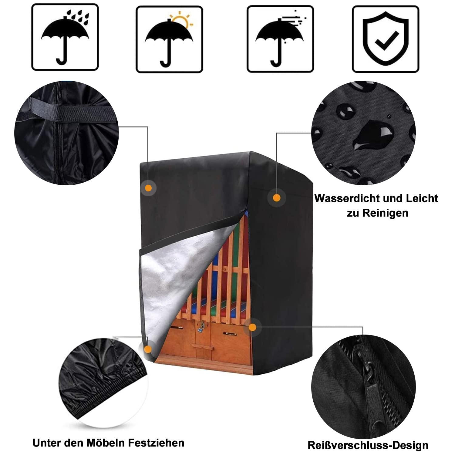 La housse est livrée avec un sac de rangement zippé pour un rangement facile lorsqu'elle n'est pas utilisée. Dimensions des Housses de Chaise: Deux tailles sont disponibles: 120 x 90 x 160 cm (petite taille) et 135 x 105 x 175/140 cm (grande taille). Accessoire Plage Et Balcon OFFCUP Housse De Protection Pour Chaise De Plage, 210D Tissu Housse Chaise De Plage Housse de chaise de plage imperméable - Vous craignez toujours que la pluie ne s'infiltre par la fermeture éclair et ne mouille votre chaise de plage ? Cette housse est fabriquée en tissu Oxford 210D résistant aux intempéries, aux UV et aux déchirures, empêchant l'eau de pénétrer et prolongeant ainsi considérablement sa durée de vie Ces dimensions conviennent à tous les types de chaises de plage. Fabriquée en tissu Oxford 210D, cette protection est coupe-vent, imperméable et anti-poussière. Caractéristiques du produit : Dimensions : 135 x 105 x 175/140 cmMatériau : tissu Oxford 210D + revêtement adhésif PU + revêtement argentéCouleur : noir 【Protection Intégrale】Notre housse en tissu imperméable protège efficacement votre chaise de plage, votre canapé de jardin ou votre bain de soleil de la décoloration, des taches d'eau et de l'usure, et offre une protection flexible à divers meubles. (Veuillez vérifier les dimensions de votre chaise de plage avant d'acheter., ) Elle protège votre chaise de la poussière et de la saleté. Notre housse de chaise de plage est livrée avec un sac de rangement, qui peut être plié et rangé lorsqu'elle n'est pas utilisée. Le revêtement argenté bloque efficacement les rayons UV, réfléchit la chaleur et protège votre mobilier des dommages. Fabriquée en tissu Oxford 210D robuste et résistant à la déchirure, elle assure une protection fiable et durable. Facile à installer et à nettoyer, cette housse est idéale pour les chaises de plage, les meubles en rotin et d'autres mobiliers d'extérieur Elle est également dotée d'un cordon de serrage réglable en bas pour un ajustement parfait et une protection optimale même par temps orageux. Compacte et portable, elle permet un gain de place considérable. Qu'il s'agisse d'éléments naturels tels que les arbres, les excréments d'animaux, les insectes ou les petits animaux comme les chats ou les visons, votre chaise de plage sera protégée. OFFCUP Housse de Chaise Suspendue, 190*115CM Housse de Chaise