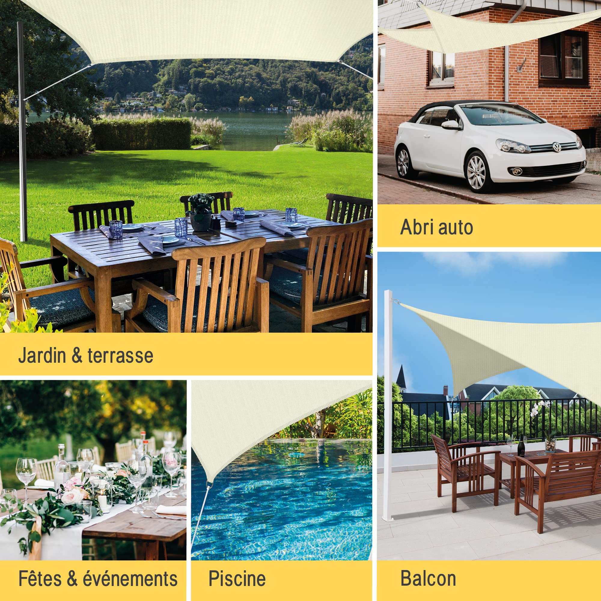 Filet Pare-soleil Jardin 3x5m Filet Protection Solaire 95% UV Tissu D'Ombrage, Toile D'ombrage Filet Protection Solaire Terrasse Serre tunnel de jardin serre à tomates filet protection solaire 2... Voile D'ombrage Imperméable Rectangulaire 3x4m, Toile Ombrage PES Resistant A Leau Resistant 98 Protection Rayons Uv Pour Patio Terrasse Exterieur Hors Blanc 3x4 72462764 RESPIRATOIRE ET IMPERMÉABLE : La voile d'ombrage est fabriquée en tissu tressé et respirant, permettant à l'air de circuler librement, laissant passer le vent et la lumière, fournissant une meilleure ventilation et un espace confortable qui vous gardera au frais et permettra à la pluie de passer à travers sans s'accumuler. Voile Solaire 1.5X5M, Voile D'Ombrage Jardin, Perméable À L'Air, Tissus... FACILE À INSTALLER ET À ENLEVER : Cette voile d'ombrage peut être facilement accrochée et enlevée, avec un espacement de 70 cm entre les trous et un grand nombre de trous, vous pouvez facilement fixer la voile d'ombrage dans n'importe quel endroit sûr, parfait pour les activités de plein air. Spécifications : Matériau : polyéthylène haute densité Fonction : ombrage Forme : rectangle Rectangle Couleur : beige Taille : L x L Produit inclus : 1 x filet pare-soleil Note : Si vous êtes satisfait de notre toile d'ombrage, si vous n'êtes pas satisfait ou si vous avez des problèmes de qualité, veuillez nous contacter à temps, le service clientèle résoudra le problème pour vous dans les 24 heures. FERMETÉ STRUCTURELLE : traitement de renforcement des bords enveloppés aux quatre coins, augmentation de l'épaisseur des œillets métalliques, conception d'élargissement des bords enveloppés, renforcement des bords scellés sans bavures, alignement net et uniforme, pour assurer un ancrage ferme, une forte résistance à la traction, une robustesse, une résistance à la traction, même à l'extérieur pendant une longue période sous pression, peut également être résistant à la déchirure. Nous pouvons fabriquer des voiles d'ombrage de différentes tailles, qui sont belles et durables, apportant fraîcheur et beauté aux terrains de jeux, aux terrains de camping, aux terrasses et aux plages.