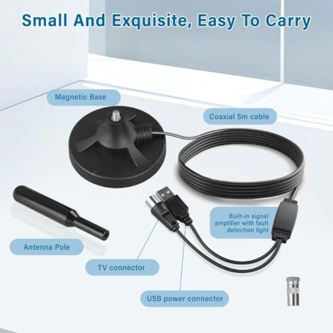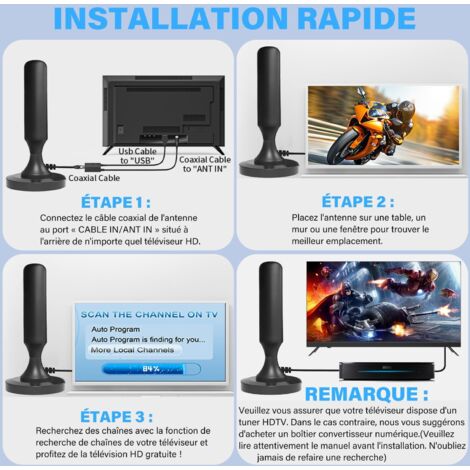 [CÂBLE COAXIAL DE HAUTE GUALITÉ] Notre antenne TV utilise des matériaux respectueux de l'environnement et un câble coaxial de haute qualité à l'intérieur pour fournir une protection contre l'humidité et la foudre. Il suffit de connecter antenne TV directement à votre TVHD muni d'un tuner numérique intégré ou d'ajouter un boîtier de conversion pour recevoir les signaux de télévision numérique Dites adieu aux factures et profitez simplement des chaînes HDTV ! Optez pour notre antenne TV intérieure/extérieure puissante WEIMEIH et accédez gratuitement aux émissions de télévision nationales et locales les plus populaires en qualité 1080p et 4KNos antennes TV TNT sont équipées d'un filtre 4G intégré qui élimine les interférences et les pertes de canal causées par les signaux de téléphone mobile 4G. Broad Wave Antenne Tv Antenne TV Intérieur Puissante TNT HD - Base Magnétique Et Câble Filtre 4G Anti-interférences Installation rapide et facile en 2 minutes! La gamme de chaînes et la qualité du signal varient en fonction de votre région. Nous vous offrons une expérience TV de qualité et sûre [BASE MAGNÉTIQUE SOLIDE ET CONCEPTION COMPACTE] L'antenne TV n'a pas besoin d'être connectée à une source d'alimentation. Antenne TV Que ce soit dans la chambre, dans le camping-car, dans le camion, à l'intérieur ou à l'extérieur, la base magnétique est facile à installer et vous pouvez avoir une réception TV dans toute la maison en quelques minutes seulement [CHAÎNE HD GRATUITE] Explorez l'excitation du monde entier. sans frais supplémentaires attendez. La conception compacte et la base magnétique permettent un positionnement flexible. Son excellente réception atteint jusqu'à 420 kmiles, vous permettant de capter le signal le plus fort dans toutes les directions. 2024 Nouvelle Antenne TV Intérieur Puissante TNT HD Antenne HDTV avec 2025 Nouvelle Antenne TV Intérieur Puissante TNT, 500KM Longue Portée et Antenne TV Intérieure à 360 °, pour 1080P 4K Chaînes Té · Livraison à la Réunion tout... Nos antennes TV vous permettent de regarder la TNT, les chaînes locales et de nombreux programmes HD comme TF1, France 2, France 3, Arte, TMC, D8, W9, TFX,M6,etc. [SIGNAL TOUJOURS STABLE DANS DES CONDITIONS MÉTÉOROLOGIQUES EXTRÊMES] Notre antenne TV intégrée à des puces de haute qualité peut mieux résister aux interférences, en maintenant la stabilité et la clarté du signal. [QUALITÉ D'IMAGE ULTRA HD 4K] Utra-Caire adopte une nouvelle technologie intelligente intégrée, qui peut filtrer efficacement les interférences des signaux cellulaires ou FM, vous apportant ainsi une qualité d'image plus claire et plus stable et réduisant le bruit. [RÉCEPTION À TRÈS LONGUE PORTÉE À 360 DEGRÉS] Cette antenne TV intérieure HDTV haute performance vous offre la liberté de recevoir deAs signaux TV n'importe où dans votre maison. Profitez non seulement d’une qualité d’image 4K, mais protégez également l’antenne interne de votre Smart TV. Vous pouvez essayer d'ajuster la position de votre antenne pour une meilleure réception