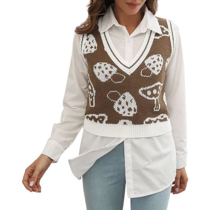 Gilet Sans Manches Tricoté Couleur Unie Débardeur Femme Col V Tricoté - 60% Coton 40% Acrylique - Style Preppy Années 90 - Taille Ajustable Vêtement Basique Quotidien Obtenez le parfait look preppy ou dark academia avec ce modèle à tricoter classique à col en V. Ce modèle intemporel présente de profondes emmanchures côtelées, une encolure en V structurée et un ourlet subtilement fendu Pull Sans Manches Femme Col V Crop Top Pull Sans Manche Femme Tricoté - France Pull Femme Bordeaux zidiau est une marque britannique spécialisée dans la mode féminine et s'est maintenant développée dans le monde entier. Design unique et fabrication exquise, couplé à la commodité et au confort, est notre intention originale de vous satisfaire. Pull en tricot sans manches pour femme Style preppy Pull Col en V Crop Top Hiver, blanc, S : : FashionAbout this item Matériau : fabriqué en fil acrylique doux, le tissu tricoté côtelé léger est respirant, doux et confortable Design : ce pull en tricot pour femme dispose d'un style gilet, d'un col en V décontracté, d'un motif torsadé, d'un design mignon, simple et polyvalent... Nous nous engageons à apporter du bonheur abordable à chaque client. Rejoignez-nous et rendez notre vie meilleure! Occasion : il est confortable et polyvalent à porter et convient à la plupart des occasions. Matériau : fabriqué en fil acrylique doux, le tissu tricoté côtelé léger est respirant, doux et confortable