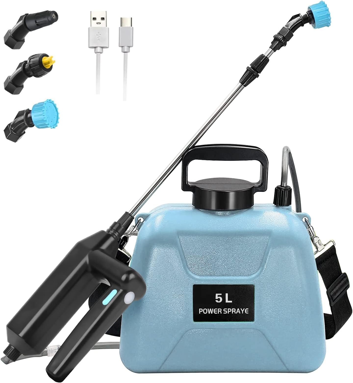 Pulverisateur Toiture YMYNY Pulvérisateur électrique à Batterie De 5 L Avec 3 Buses, Poignée Rechargeable, Pistolet Rétractable, Bandoulière Réglable, Pour Pelouse, Jardin Et Nettoyage(5L Bleu Pistolet Pulvérisateur 5 Litres Nos pulvérisateurs électriques sont idéaux pour les amoureux du jardinage et les professionnels recherchant une solution efficace et pratique. Avec divers modèles, comme le pulvérisateur électrique de 5 L ou le modèle plus puissant de 20 L, vous trouverez forcément l'outil qui répondra à vos besoins Pulverisateur De Jardin Pulvérisateur électrique, Tuyau De 5m, 2400MAH Rechargeable, Arrosoir Pulvérisateur électrique Rechargeable 💧【Système de Pression électrique Efficace】Le pulvérisateur à batterie est équipé d'une batterie lithium-ion durable de 2400mAh, qui peut pulvériser en continu pendant 2 heures avec une seule charge, assurant un débit constant pour une pulvérisation régulière et uniforme. 💧【Buse Réglable】Le pulvérisateur électrique est équipé d'une lance ergonomique et d'une buse réglable : la pulvérisation uniforme/jet d'eau permet de passer d'une pulvérisation fine pour les plantes délicates à une pulvérisation plus puissante pour les traitements plus intenses. VINGVO Pulvérisateur Électrique Automatique Rechargeable, Arrosage Jardin, 2400mAh... Le grand réservoir d'eau de 5 litres/8 litres évite les remplissages fréquents pendant les longues heures de travail, ce qui vous permet d'économiser du temps et de l'énergie sans vous imposer trop de contraintes. Son pistolet télescopique à longue portée permet une pulvérisation précise même dans les zones les plus difficiles d'accès, garantissant ainsi une efficacité maximale. 💧【Widely Used】Notre pulvérisateur d'épaule électrique est parfait pour les besoins de pulvérisation à l'intérieur et à l'extérieur, tels que l'arrosage, le jardinage, le nettoyage général, le lavage, le bain des animaux de compagnie, la désinfection, l'arrosage des plantes de jardin, la pulvérisation des plantes d'intérieur, le nettoyage de la voiture, l'humidification de l'air, le nettoyage des vitres, et ainsi de suite. 💧【Telescopic Pole】Extension pole and non-slip handle, telescopic design, up to 60cm long, expand your spraying range.