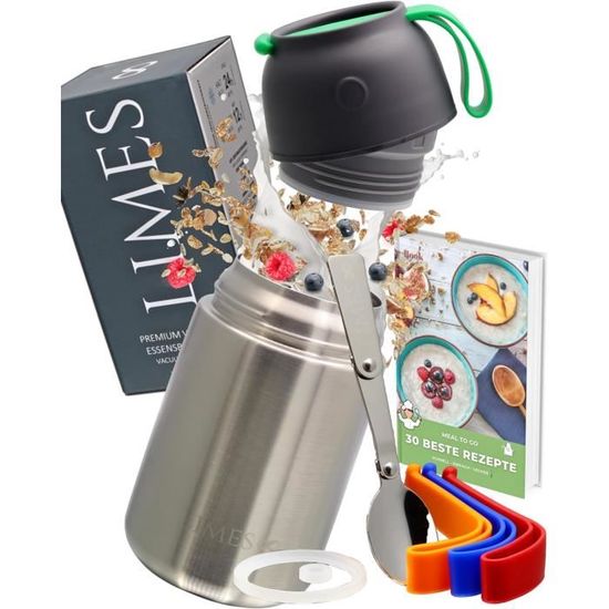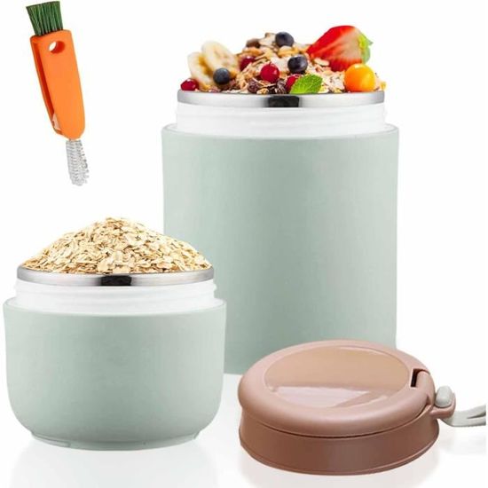 En outre, le récipient contient une cuillère pliable en acier inoxydable qui se range dans le couvercle – Idéal pour les déplacements, comme un gobelet à céréales pratique à emporter en acier inoxydable. Ce récipient isotherme pour repas est un compagnon bien pensé, écologique et élégant au quotidien, que ce soit pour les enfants ou les adultes Robuste et de qualité alimentaire : le récipient intérieur est fabriqué en acier inoxydable 316 de qualité alimentaire, sans BPA et autres substances nocives, et particulièrement robuste, inoxydable et sans goût. Le couvercle anti-fuite avec joint en silicone intégré empêche efficacement les fuites de liquides. Acasimo Ensemble de boîtes à déjeuner isothermes portables Convient également comme gobelet isotherme pour les petits repas, ce récipient polyvalent allie fonctionnalité, qualité et style. Parfait pour une utilisation quotidienne avec de la soupe, des céréales, du riz ou du yaourt. Matériau de qualité supérieure et sécurité : le récipient isotherme pour aliments est fabriqué en acier inoxydable 304 de qualité supérieure à l'intérieur... Sûr et étanche avec joint en silicone : grâce au joint en silicone dans le couvercle, le récipient est absolument étanche – idéal pour transporter des soupes, des ragoûts ou des yaourts dans le sac Le récipient intérieur en acier inoxydable 316 est particulièrement durable, inoxydable et neutre au goût. Isolation durable pour les aliments chauds et froids : notre récipient isotherme garde vos repas au chaud jusqu'à 12 heures et au frais pendant 24 heures. Récipient Repas Chaud Froid Thermos Pour Purée D'acier Inoxydable 500ml Avec Cuillère Gris Gobelet Isotherme 550 Ml Garde Chaud Froid Cuillère Incluse Tbest Récipient pour aliments bento étanche Boîte à lunch thermique en... Idéal pour une utilisation quotidienne comme récipient isotherme pour les aliments ou les muesli, en acier inoxydable, sûr et sain pour toute la famille