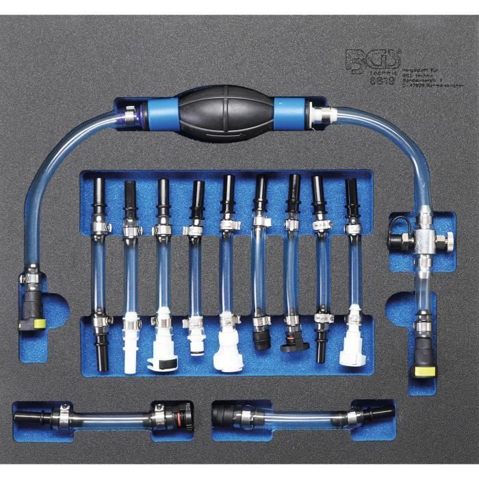 Kit De Purge, Tube De Remplissage, Outil Marin, Système De Direction Hydraulique Tube Et Tuyau De Pont Haute Qualite Le tuyau de carburant transparent permet un contrôle visuel direct des bulles d'air - Vous pouvez ainsi voir de manière fiable si le système a été complètement ventilé. Purge Air Carburant Véhicule Diesel Purgeur Système Carburant Diesel 7 Pièces Kit Amorçage Diesel SMOTIVEPRO 7 Pièces - Purge Système Carburant Véhicules Diesel Kit Purge Filtre Carburant Outil Purge Diesel 7 Pièces Cela rend l'outil adapté à une large gamme de voitures diesel, camionnettes et véhicules utilitaires légers. Coffret d'amorçage et de purge pour moteur diesel, 7 pièces Permet de purger l'air sur de nombreux circuits de carburant diesel basse pression - Tuyaux transparents permettant de voir les éventuelles bulles d'air dans le... Amélioration des performances du moteur grâce à l'évacuation de l'air : kit de purge pour véhicules diesel élimine efficacement l'air du filtre diesel et des conduites pour une alimentation en carburant uniforme et un fonctionnement plus silencieux et plus efficace. Que ce soit après un changement de filtre, un entretien ou une réparation, ce kit vous fera gagner du temps et vous donnera des résultats précis. Gagnez un temps précieux et obtenez des résultats efficaces. Il élimine efficacement l'air des conduites de carburant et des filtres, ce qui évite les problèmes de démarrage et améliore les performances du moteur. Grâce à son design convivial, cet outil de purge convient aussi bien aux garages automobiles qu'aux amateurs ambitieux qui souhaitent entretenir eux-mêmes leurs véhicules diesel. Description du produit : Le kit d'outils de purge et d'amorçage diesel de 7 pièces est la solution idéale pour la purge rapide et efficace et le remplissage du système de carburant à basse pression des véhicules diesel.