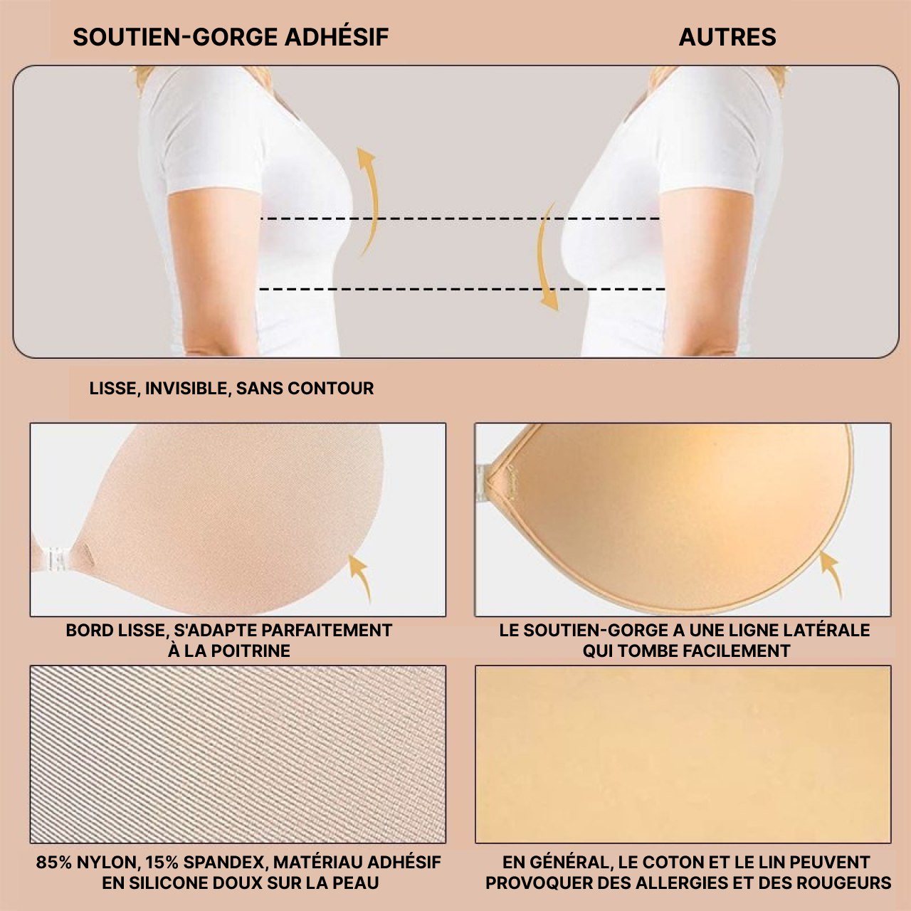 Coque Adhesive Soutien Gorge Autocollant Silicone Soutien-Gorge Adhésif Push-Up Jinpojun - Sans Bretelles, Invisible - Réutilisable Soutien Gorge Push Up Invisible Brassière Adhésive Maillot Bain Robe 1 ou 2 soutien-gorges sans bretelles à adhésif invisible | Shopping Le Soutien-Gorge Invisible Adhésif Réutilisable offre un effet push-up naturel et un maintien parfait sans bretelles ni armatures. Son gel adhésif végétal hypoallergénique assure confort, respiration et adhérence durable, même pendant des heures. Grâce à sa fermeture centrale et son design sans coutures, il rehausse le décolleté tout en restant invisible sous les vêtements... Support tridimensionnel: grâce à l’effet push-up innovant, vous pouvez créer une forme particulièrement ronde avec le coussin de poitrine, ce qui donne à votre poitrine un look très serré et discret, sans fléchissement. Solide: les coussinets de poitrine en silicone soulèvent la poitrine et le haut du corps et se rapprochent fermement du corps et des vêtements afin que vos vêtements ne glissent pas dans la danse, le sport, la marche ou la vie quotidienne. Facile à nettoyer: les coussins pushup sont enduit de colle amicale pour la peau et imperméable à l’eau. Silicone doux et respectueux de la peau: grâce à une coupe confortable et des matériaux doux, les coussins push-up auto-adhésifs garantissent un port confortable pendant des heures sans égratignures ou plaies désagréables. Silicone doux et respectueux de la peau: grâce à la coupe confortable et aux matériaux doux, soutien gorge adhesif garantit un port confortable pendant des heures sans égratignures ou plaies désagréables. Support tridimensionnel: grâce à l’effet push-up innovant, vous pouvez créer une forme ronde spéciale avec rembourrage soutien gorge qui donne à votre poitrine un look très serré et discret, sans fléchissement. Grâce à la coupe ronde spéciale, soutien gorge adhesif peut être caché sur n’importe quel vêtement comme un soutien-gorge régulier, un maillot de bain, un haut de bikini, une robe, un haut sans bretelles, des vêtements décontractés, etc. Soutien-gorge sans armatures doublé 100% coton