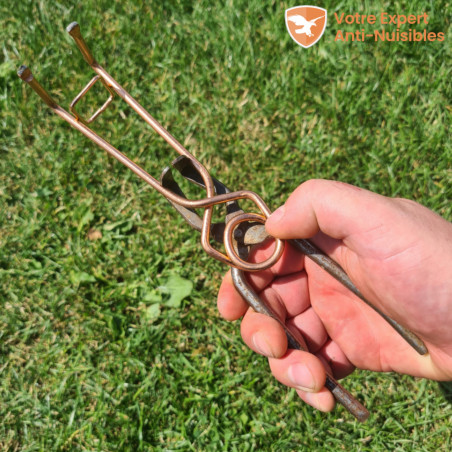 Est-ce durable ? Fabriqués en acier robuste, les pièges sont résistants et peuvent être réutilisés saison après saison. Le manuel pas à pas inclus avec le piège à taupe putange vous aide à trouver la galerie, activer le piège taupe et l’installer dans les tunnels de la taupe. Idéal pour protéger potager et pelouse en évitant les substances nocives pour vos plantes. Est-ce efficace contre les taupes ? Oui, son mécanisme puissant permet de capturer une taupe sous 72h. Meilleures pièges a taupes putange - Novembre 2025 Pose facile étape par étape de l’anti-taupe : piege a taupe pince fournie pour armer sans effort. Est-ce sans danger pour les animaux domestiques ? Installé correctement dans une galerie souterraine, le piège reste inaccessible aux animaux domestiques. Capture sous 72h : Le piege a taupe putange est équipé d'un système mécanique à ressort puissant pour un déclenchement quasi instantané. · ✓ Pose facile étape... Les chaînettes maintiennent la détente attachée au piège taupe permettant sa réutilisation capture. Est-ce facile à installer ? Oui, la pince d’activation permet une mise en place simple et rapide, même pour un utilisateur débutant. La détente soudée du taupicide résiste à la déformation et conserve une efficacité constante. Piege A Taupe Professionnel Piège Putange Anti-taupes – Élimine Les Taupes | MECANIX Piège Putange Acier Pièges à taupes putange x2 Format adapté aux tunnels des taupes : La petite taille de l’attrape taupe et sa fixation par sardines facilite la pose dans les galeries étroites des taupes.