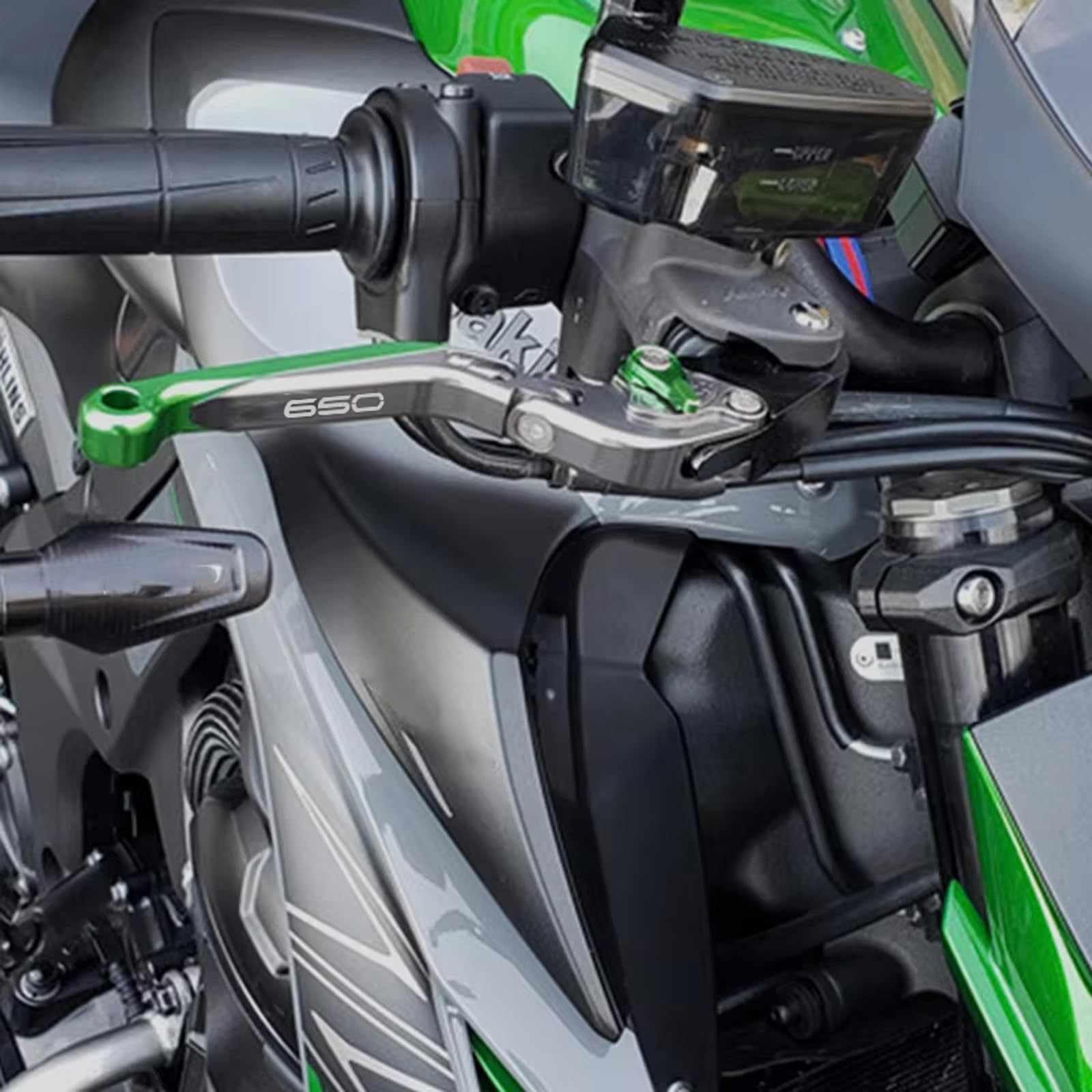 Leviers Pliables Pour Kawasaki Z650 QJY-Motor Part-Store Z650 Moto Leviers D'embrayage De Frein Aluminium Pour Z650 Z 650 2017 2018 2019 2020 Ninja650R ER6F Vulcan S 650cc (Vert/Titane Levier Frein Embrayage Pliable Z650 Kit Chave Ignição Kawasaki Ninja 650 R Ninja650r 11-12 Kit levier de frein et d'embrayage LIGHTECH Ninja 650, Z650 2017-2024, Z900 2017-2024, ZX-4R 2024. Référence KLEV142J. Kit levier de frein et d'embrayage... Sa couleur unique et élégante s'harmonise parfaitement avec la carrosserie de votre moto. 【Excellentes performances】 Installation facile, finition soignée, Excellent rapport qualité-prix et matériel robuste. Le levier fonctionne parfaitement. Veuillez donc vérifier attentivement le modèle et l'année de votre véhicule. Son réglage facile,Son confort optimal et son esthétique unique en font un excellent remplacement pour votre levier de frein et d'embrayage d'origine. 【Caractéristiques】 Réglable sur 6 positions, la poignée est pliable à 90 degrés. Le levier est extensible de 40 mm, pour une longueur maximale de 182 mm. Kit Chave Ignição Kawasaki Ninja 650 R Ninja650r 13-17