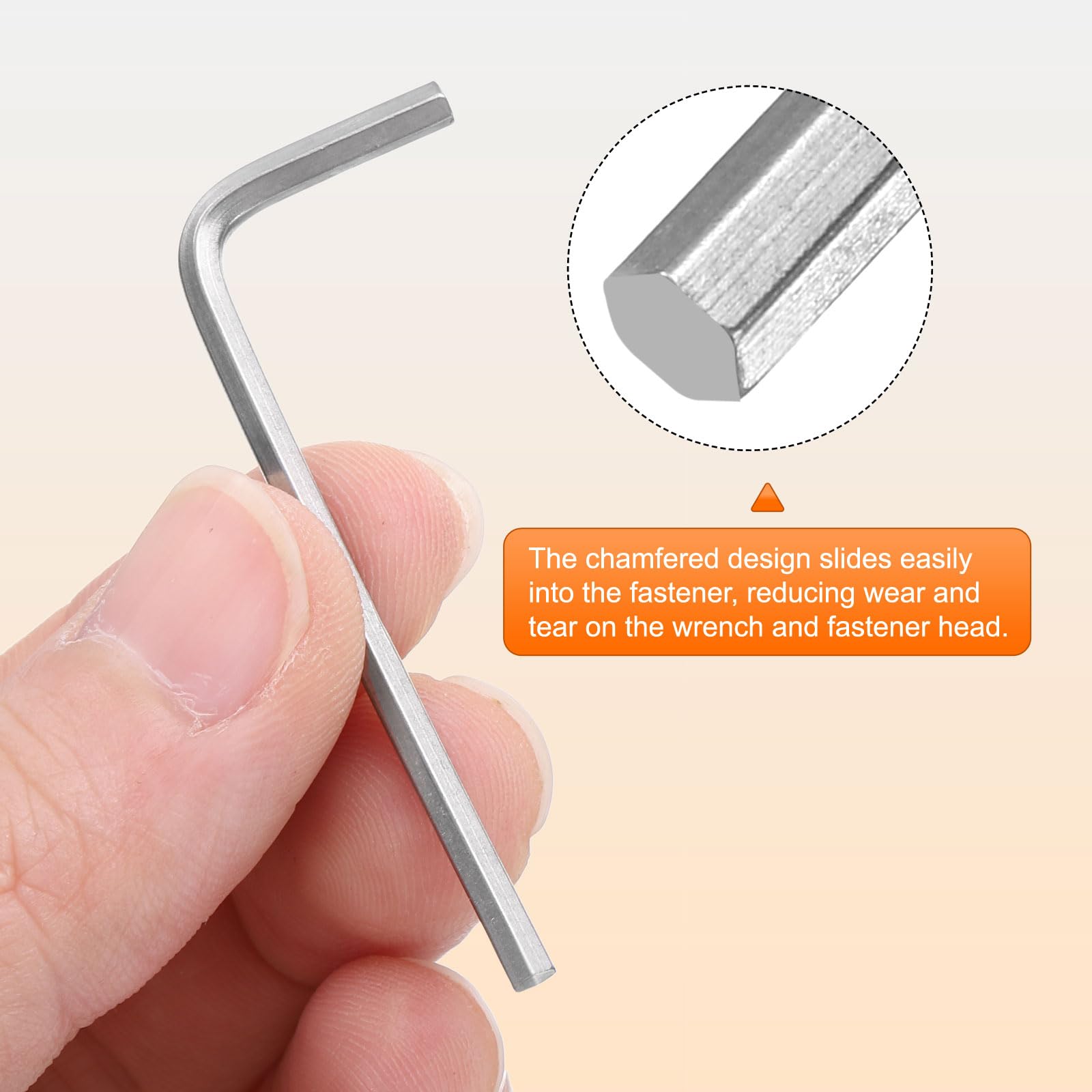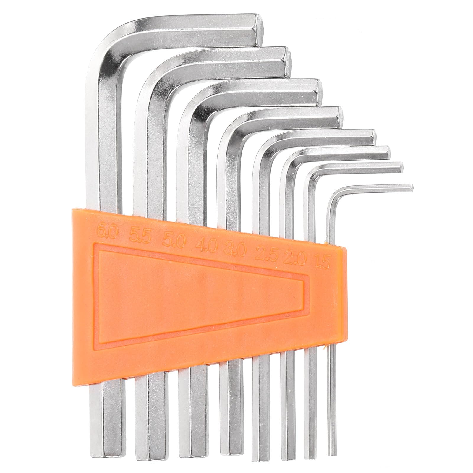 Cle Alene QUARKZMAN 5Pcs Clé Hexagonale 1.5mm Acier Inoxydable En Forme De L Clés Hexagonales Métriques, Outil De Réparation Pour La Maison, Le Bricolage, La Réparation De Vélos Et De Motos Clé Allen 35PCS Clés Allen Clés Torx Clé Allen Boule HX Métrique Pouces Cr-V-Stal... CLE A MOLETTE,4mm 1pcs--Clé Allen à clé hexagonale de qualité Caractéristiques - La conception du bras long/court offre une portée supplémentaire pour les points de travail profonds sur l'extrémité longue et un effet de levier supplémentaire pour serrer les fixations sur l'autre extrémité courte. Clé hexagonale robuste à bras long de type L (également connue sous le nom de clé à douille) pour une utilisation avec les fixations hexagonales et les douilles dans une grande variété d'applications, y compris les panneaux, l'assemblage de meubles, l'assemblage d'électronique, l'automobile et les applications industrielles Applications - La clé hexagonale à poignée en L est largement utilisée pour retirer et installer des vis à tête creuse hexagonale dans les porte-serviettes, les poignées de porte, les meubles assemblés, les équipements, etc. Taille - 2,5 mm, longueur du bras long : 47 mm / 1,85 pouce, longueur du bras court : 18 mm / 0,71 pouce. Matériau - La clé à molette en L est en acier inoxydable 304 trempé et traité thermiquement (28-32HRC), haute résistance et dureté, antirouille et résistant à l'usure Clé en Acier Inoxydable en Forme de L, Clé Métrique, Outil de Réparation pour Bricolage à la Maison, Vélos et Motos 1., La clé en forme de L est fabriquée en acier inoxydable 304 trempé et traité thermiquement (28-32HRC), offrant une haute résistance et dureté, inoxydable et résistante à l'usure.