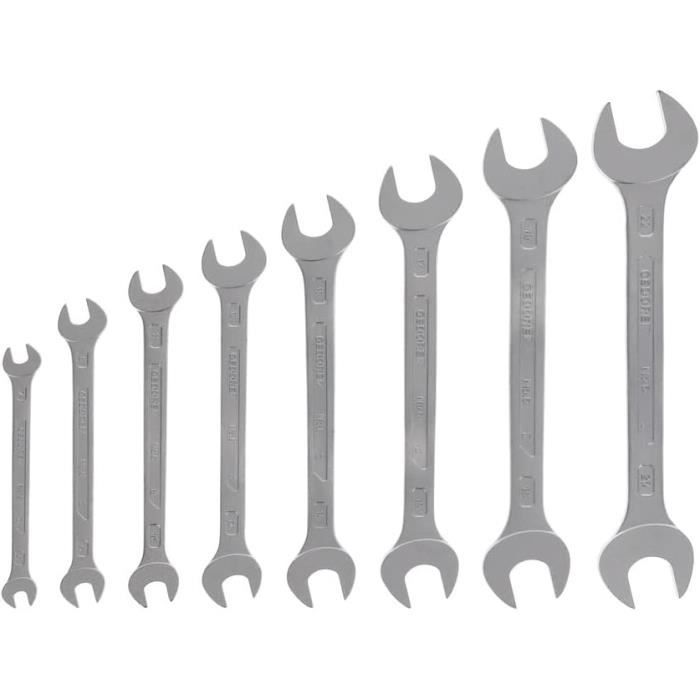 Taille - Spécifications : 5 mm / 0,20 ; Angle de décalage ouvert : 15° + 75° ; Longueur totale : 85,5 mm / 3,37 ; Épaisseur de la tige : 3 mm / 0,12 ; Contenu de l'emballage : 2 clés plates fines. Assortiment de clés plates doubles - GEDORE - A fourche - Acier chromé mat antireflet - 8 pièces... Clé coudée - L'ouverture de la clés plates est inclinée à 15° et 75°, ce qui permet un serrage plus rapide et une meilleure efficacité. Avant d'acheter une clé plate fine, veuillez vérifier que l'ouverture de la clé correspond à la taille de votre outil. Cle Plate QUARKZMAN Clé Plate Lot De 2 Clés Plates Ultra-Fines De 9 Mm, Doubles Clés Plates Métriques Acier Inoxydable 30Cr13, Avec Extrémités Ouvertes Coudées à 15° Et 75° Pour Réparation Automobile Clés Plates Fines La surface polie résiste à la rouille, même en milieu humide. Sa surface polie résiste à la rouille, même en milieu humide. Matériau - Fabriquée en acier inoxydable 30Cr13, forgée par façonnage thermique, sa dureté atteint HRC48±2, offre une forte résistance à l'usure, une grande résistance à la déformation et une longue durée de vie. La force à quatre points est parfaitement ajustée aux vis pour une fixation plus sûre. Sa petite taille et sa conception fine permettent une utilisation fluide dans les espaces restreints. Elles sont utilisées dans des domaines tels que la maintenance mécanique, la réparation automobile, la fabrication mécanique et l'assemblage à domicile. Lors de l'utilisation, assurez-vous que l'ouverture de la clé est bien ajustée à la tête de la vis ou de l'écrou afin d'éviter tout glissement ou dommage dû à une force latérale. Jeu de clés à fourches doubles FACOM | BRW La force à quatre points est parfaitement adaptée aux vis pour une fixation plus sûre. Application – Les clés plates fines sont des outils utilisés pour serrer ou desserrer des écrous et des boulons, adaptés aux vis et autres fixations de différentes tailles. Connection Rise erosion clés plates admiration Spokesman approach