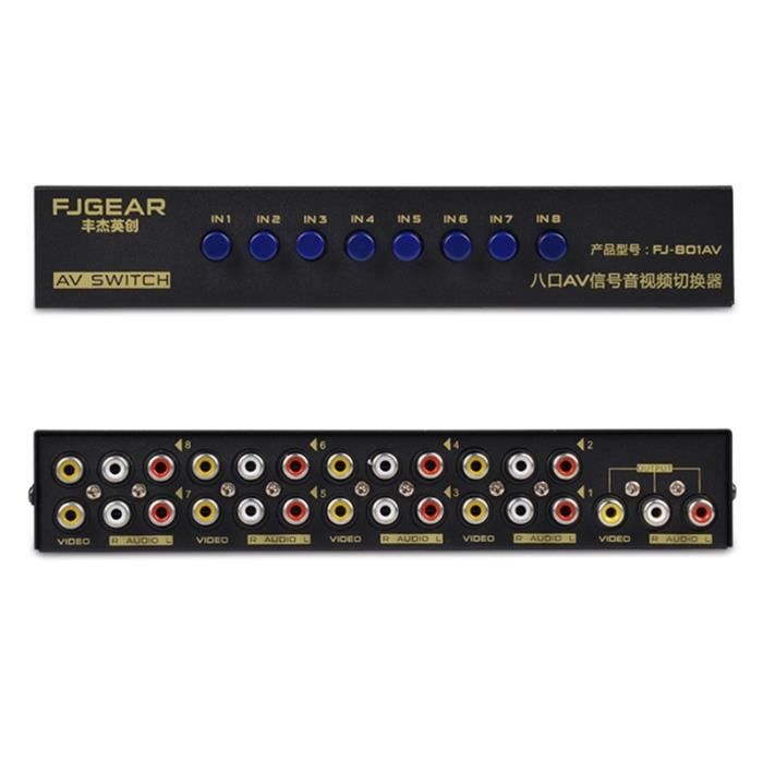 QiCheng&LYS 1 In 8 Out 3 RCA AV Audio Video Splitter Verstärker für Kabel Box DVD DVR Analog TV Pour DVD Console Jeu Décodeur QiCheng & LYS 8 Ports Entrée 1 Sortie Vidéo Audio AV RCA Boîtier Sélecteur Manuel Audio : entrée signal audio : 2 V (RMS) Impédance d'entrée : 47 kOhm Signal de sortie vidéo : 2 V (RMS) Impédance de sortie : 1 KOhm Fréquence : 10 Hz - 20 KHz, 0 dB. 🌹🌹 Interrupteur AV manuel, prise RCA standard « VIDEO, R-AUDIO-L ». 🌹🌹 Type : 8 ports audio vidéo - Interface d'entrée : 8 ports RCA AV - Interface... Commutateur AV 8 voies 8 en 1 audio vidéo L/R RCA pour console de jeu DVD STB Noir QiCheng & LYS 8 Port Entrée 1 Sortie Vidéo Audio AV RCA Commutateur Commutateur Sélecteur Boîte (8 Port) : : High-TechRetours & garanties légales: Demandez le retour d'un produit jusqu'à 14 jours après sa réception, sans motif, pour obtenir un remboursement complet (prix et frais de livraison) au titre du droit légal de rétractation. permet en plus les retours... 🌹🌹 Vidéo : signal vidéo d'entrée : 0,8-1,0 V Impédance d'entrée p-p : 75 ohms Signal de sortie vidéo : 0,8-1,0 V Impédance de sortie p-p : 75 ohms Bande passante : 50 Hz à 5,5 MHz. 🌹🌹 Interrupteur AV manuel, prise RCA standard « VIDEO, R-AUDIO-L ».