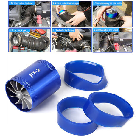 Générateur Turbine Pour Moteur Atmosphérique Durite Turbo, Qiilu Auto Moteurs Turbocompresseurs Tube De Ventilateur économie Carburant Double Hélice Turbine Turbo Fan Universel Filtre à Air Supercharger Ventilateur d'admission Turbo Compresseur - Auto Turbine D'admission D'air De Voiture à Double Ventilateur Super Charger... Spécifications: Condition: 100% NEUF Matériau: alliage d'aluminium + caoutchouc Couleur: noir, bleu (facultatif) Longueur: 7,5cm / 3,0 pouces Diamètre intérieur: 6,0cm / 2,4 pouces Diamètre extérieur: 6,4 CM / 2,5 pouces Poids de l'emballage: environ 418g Accessoires: Généralités Liste d'emballage: 1 * générateur de turbines d'admission 3 * support en caoutchouc Notes: 1., En raison de la mesure manuelle, veuillez autoriser une erreur de 1 - 3mm. Merci pour votre compréhension., 2., L'étalonnage du moniteur n'est pas uniforme et la couleur de l'objet peut différer légèrement de celle de l'objet réel. Veuillez vous assurer que cela ne vous dérange pas avant de commander. Ventilateur d'économie de carburant à turbine, double hélice, puissance accrue, meilleure utilisation du gaz / carburant Une exécution raffinée et des performances élevées permettent d'économiser environ 5 à 15% de carburant sur votre véhicule Le système d'admission est contrôlé plus dynamiquement en forçant un fort débit d'air dans la Chambre de combustion à grande vitesse Accessoires universels pour la plupart des véhicules à aspiration naturelle. Facile à installer, mais toujours recommandé pour une installation professionnelle Ventilateur d'économie de carburant à turbine, double hélice, puissance accrue, meilleure utilisation du gaz / carburant YUI double ventilateur de turbocompresseur Turbonator d'admission d'air...