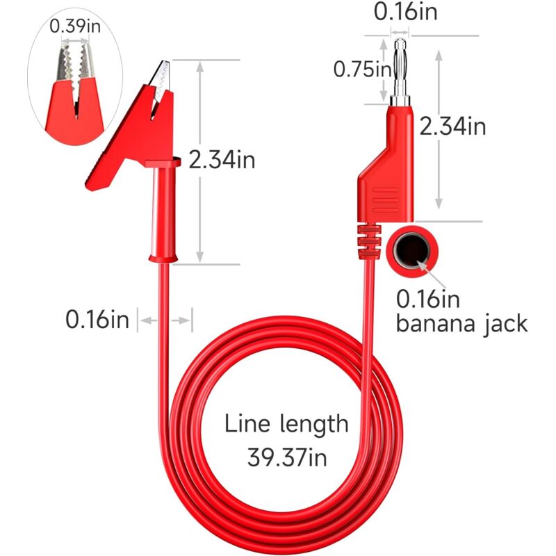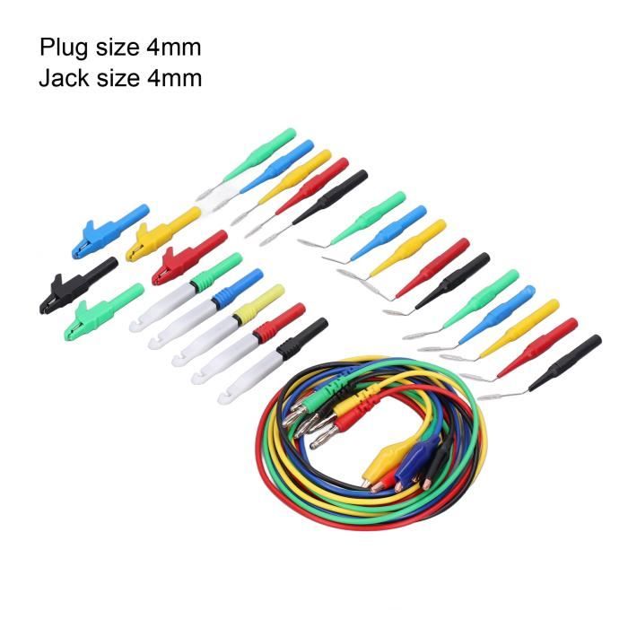 1 câble de mesure avec fiche banane de 4 mm. CÂBLE DE TEST multimètre facile à assembler avec prise banane type ※ Parfait pour tester les circuits électriques, poignée antidérapante pour une meilleure prise en main, facile à utiliser, extrêmement pratique pour le dépannage électrique, l'électronique automobile ou pour le placer sur les pendant les préliminaires douloureux. Câbles Mesure électrique Qiilu Fil De Test De Prise Banane Connecteurs De Fiche Banane 4 Mm Kit De Fil De Test De Type Câbles Test Multimètre Fiches Banane 1 x câble de test de 4 mm. Avec des fils à code couleur, vous pouvez tester les circuits sans croiser les câbles ou causer des courts-circuits. SUC-Prise banane de 4 mm (Le Noir)10 Pcs 4mm Banane Jack Socket M3... (La boutique a d'autres produits de soutien, si nécessaire, allez au magasin pour acheter., ) Nous nous efforçons de vous fournir uniquement des produits de la plus haute qualité et le meilleur service. YOSOO Fiche banane 4mm Fiche Banane 4 Mm, Fiche Banane Stable Isolée en... Nous faisons de notre mieux pour répondre à vos besoins. Peut être utilisé comme câble de démarrage basse tension. ※ Les mini connecteurs banane de 4 mm sont parfaits pour connecter un multimètre à un circuit de fente, pratique pour vérifier les circuits dans les plans d'essai, câble de mesure à pince crocodile - Le fil est fermement serti sur la borne, adapté pour les circuits de cavalier et le remplacement ou le test temporaire. Spécifications: Matériel: cuivre, métal plaqué or, plastique. Équipé d'un clip crocodile de 6 mm.