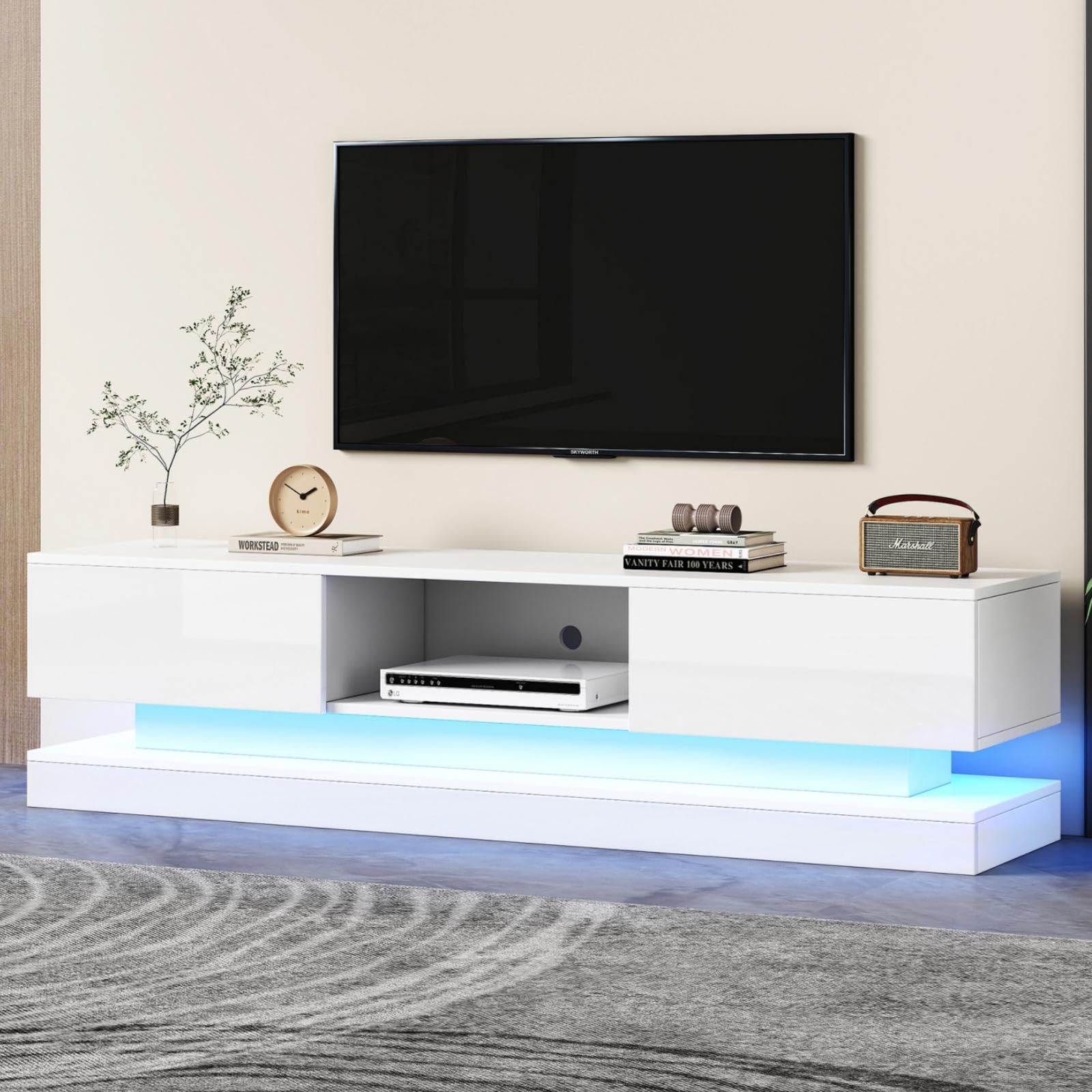 Il se peut qu'ils n'arrivent pas en même temps. Meuble TV moderne - avec 2 portes et 2 tiroirs - pieds en métal - Blanc... Un style intemporel et tendance:La combinaison harmonieuse du blanc et du noir confère à ce meuble un charme universel qui s'intègre parfaitement dans les intérieurs de style nordique, industriel ou minimaliste La combinaison classique du noir et du blanc s'adapte à tous les styles d'intérieur, qu'il soit nordique, industriel ou minimaliste. Meuble Salon Blanc Noir KOMHTOM Meuble TV Bas Avec Quatre Tiroirs Et Deux Portes, Meuble TV Moderne Noir, Adapté Pour Le Salon Et La Chambre à Coucher (noir Meuble Salon Design épuré Pour TV Consoles Livres Son design moderne apporte instantanément luminosité et sophistication à votre espace Ce meuble TV au design moderne et épuré, avec son corps blanc brillant et ses pieds noirs, offre un contraste saisissant qui ajoutera une touche de style et d'élégance à votre salon. Veuillez faire preuve de patience., 2., Les mesures étant prises manuellement, il peut y avoir une erreur de 2 à 3 cm, ce qui est normal., 3., Toutes les photos sont prises en nature, en raison de la lumière ou du moniteur, il peut y avoir une légère différence de couleur., 4., Si vous avez des questions, veuillez d'abord contacter notre service clientèle. Lignes épurées et design intemporel:Doté de formes simples et fluides, ce meuble adopte un style sobre mais raffiné, renforcé par une finition soignée. Un choix parfait pour ceux qui recherchent l’équilibre entre esthétique et praticité Il est équipé de trois portes et de deux tiroirs, offrant ainsi un espace de rangement suffisant pour ranger facilement vos consoles de jeux, livres ou objets décoratifs, et garder votre espace propre et bien rangé. Matériau:Panneau de particules, Finition brillante:Oui, Nombre de colis:2, Remarque: 1., Ce produit est expédié en 2 colis. Meubles TV : notre sélection des plus belles tendances pour le salon Pas question de se contenter de la fonctionnalité, le design d’un meuble TV est aussi essentiel que ses dimensions ou ses capacités de rangement. Matériaux, portes, tiroirs, formes et finitions, tout compte : puisqu'il occupe de la place dans le salon, on prend le temps de choisir un vrai meuble coup de cœur Ses dimensions sont de 190 x 45 x 35 cm. Montage rapide et facile : Ce meuble TV est conçu pour être facile à assembler et est accompagné d'instructions claires, étape par étape, que vous pouvez suivre pour terminer l'assemblage rapidement. Meuble TV avec 2 portes et un compartiment ouvert
