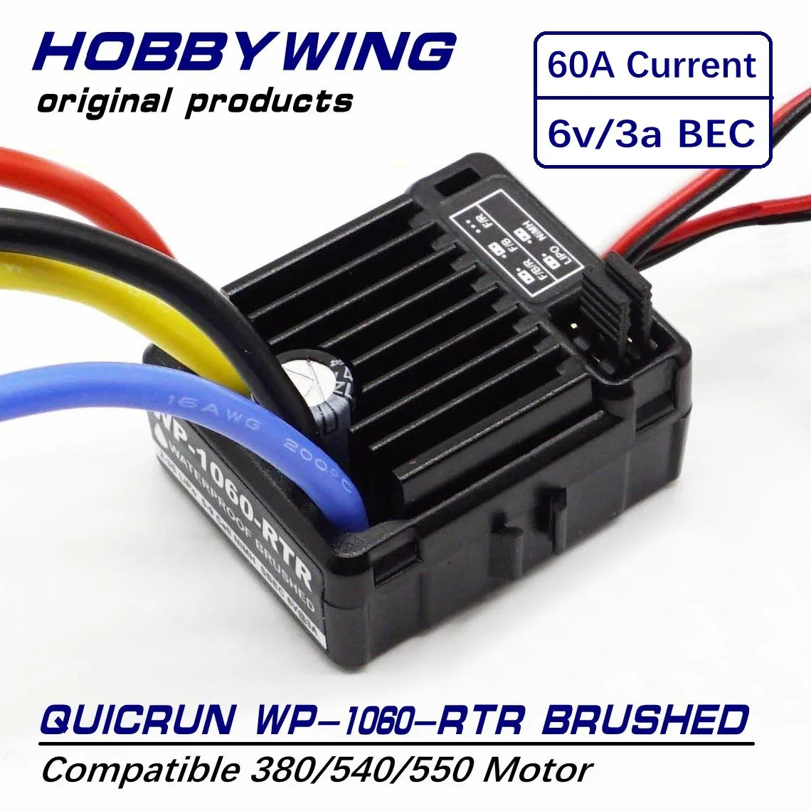 Vendu par Hi-Goeswell Store. Services logistique et livraison gérés par AliExpress Le Hobbywing Quicrun 1060 a été soigneusement conçu pour servir d'ESC idéal pour les applications à l'échelle 1/10ème entraînées par des moteurs à balais. Cet ESC compact offre des performances extrêmes, complétées par un module de condensateur intégré pour une fourniture de puissance efficace Anbernic Rg406v ESC Contrôleur De Vitesse électronique Brossé Hobbywing Quicrun 1060 Controlador de Velocidad ESC HobbyWing QuicRun 1060 - 60A