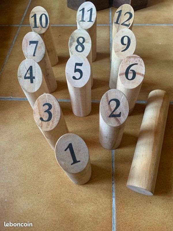 Jeu de quilles - Nordique - Bois - 12 quilles - 1 lanceur - Extérieur... Attention : une quille n'est considérée comme abattue que si elle est tombée ENTIÈREMENT et ne repose sur aucune autre. Le gagnant est celui qui arrive à totaliser exactement 50 points. Jeu De Molkky Jeu De Quilles Nordiques Mölkky En Bois Coloré Livoo Objectif Tendance Jeu Traditionnel Bois Enfants Si un joueur fait tomber plusieurs quilles, il gagne autant de points que de quilles abattues. Description : 12 quilles numérotées de 1 à 12. Deux façons de marquer des points : si un joueur fait tomber une seule quille, il gagne autant de points que le nombre inséré supérieur Descriptif produit: 12 quilles numérotées de 1 à 12., Il y a deux façons de marquer des points : si un joueur fait tomber une seule quille, il gagne autant de points que le nombre inscrit dessus. Ocean 5 Kubb Deluxe - Jeux en Bois Viking a Lancer - Jeu de Quilles