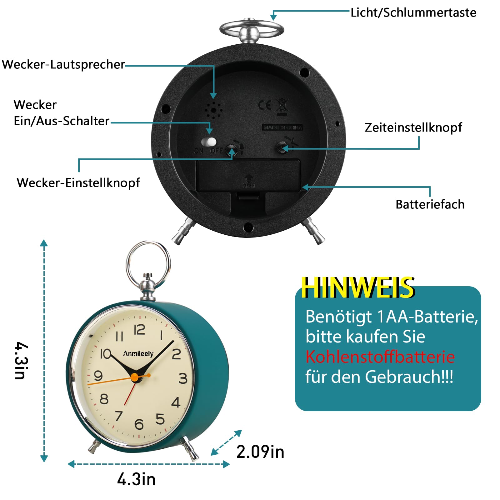Grâce à l'utilisation d'un mouvement à quartz importé, la trotteuse se déplace en continu sans tic-tac et n'interfère pas avec le sommeil. C'est un bon compagnon pour la vie et le travail. Réveil analogique sans tic-tac avec veilleusePrix après Cashback 14,81 € Avantages d'acheter sur Vous bénéficiez d'un Cashback instantané sur tous vos achats Une fois gagné, vous pouvez le dépenser ! Utilisez-le sur votre prochaine commande, mettez-le de côté ou virez-le sur votre compte C'est un jeu d'enfant ! Pas de codes, pas de pièges et aucun coût pour vous. En... Gauche pour l’heure d’alarme, droite pour l’heure normale. RéVeil RéTro De Haute Qualité! Cuisine:Si vous cuisinez, le fait de connaître l'heure peut vous aider à préparer des plats délicieux ; Chambre à coucher : pour vous réveiller tous les matins. Augmentation progressive du son de l'alarme. Mouvement à quartz de qualité Réveil Snooze Analogique Silencieux TENOCK TENOCK RéVeil Analogique Pour La Chambre à Coucher Sans Tic Réveil Cadran Clair Facile à Lire 💡【Veilleuse Et Snooze】💡 Vérifiez facilement l'heure dans l'obscurité avec la petite veilleuse jaune et la fonction snooze qui vous permet de dormir un peu plus longtemps. Fonction snooze, vous pouvez faire une petite sieste. La veilleuse douce n'éblouit pas les yeux et est pratique pour vérifier l'heure la nuit. Réveil rétro de... Reportez-vous au diagramme ci-dessus pour régler le réveil. Étude : placez-le sur votre bureau d'étude, ajustez vos heures de travail, reposez-vous correctement et combinez le travail et le repos. Le réveil dispose d'un compartiment profond pour les piles au carbone. Réveil analogique pour chambre à coucher, sans tic-tac, avec Il peut être offert aux amis, à la famille, aux amoureux et aux enfants. Fonction Snooze, pour faire une sieste. Tournez dans le sens de la flèche. Des Objets Parfaits Pour La DéCoration IntéRieure !, Si vous avez des problèmes, contactez-nous 24/7 pour exceptionnel. 1 Pile carbone AA Réveil analogique japonais à mouvement quartz silencieux pour une heure précise sans perturber. Réglage heure et alarme Veilleuse douce qui n'éblouit pas les yeux et qui est pratique pour vérifier l'heure la nuit. 🔋【Fonctionne Sur Pile】🔋 Pas besoin de cordons ou de prises - notre réveil rétro est alimenté par 1 pile AA (Carbon battery,non inclus) pour la commodité et la portabilité.