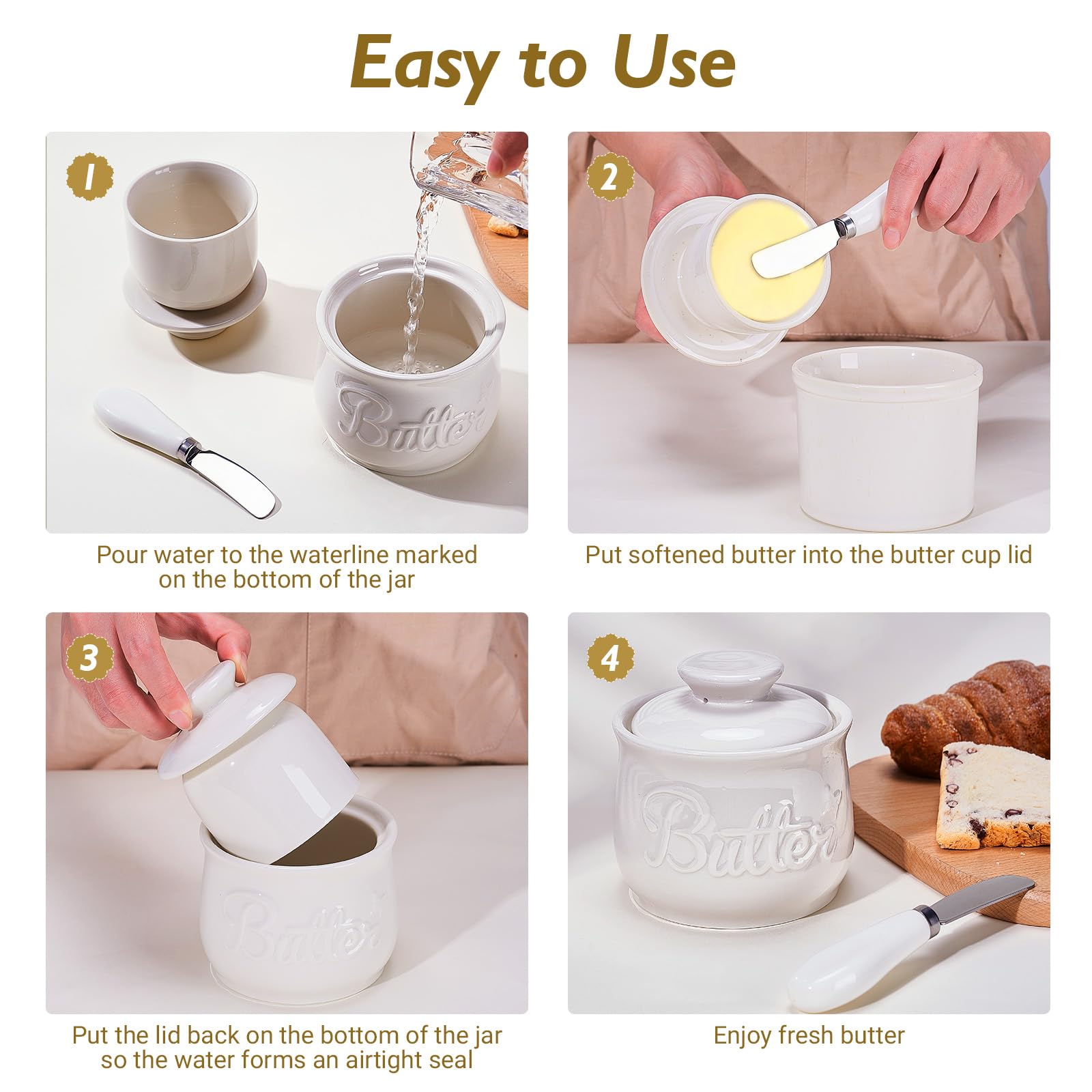 Cadeau parfait : cette cloche à beurre est parfaite pour les amateurs de beurre, idéale comme cadeau d'anniversaire, de fête des mères ou de fête des pères. Beurrier Blanc Capacité 400g Pavlleen Beurrier En Porcelaine,Beurrier à Glaçage Réactif,Boîte à Beurre Avec Ligne D'Eau,Pot à Beurre Français Avec Couvercle,pour Beurre Frais à Tartiner,conserver Le Beurre Frais (Blanc Beurrier 500g Caractéristiques : Nom du produit : beurrier en céramique Matériau : céramique de qualité supérieure., Couleur : blanc. Obtenez votre propre pot de beurre : ce pot de beurre garde votre beurre doux et tartinable pour les petits pains, le pain, les toasts, les gaufres, les crêpes et plus encore sans le laisser dans votre assiette La surface est lisse et facile à nettoyer, vous n'avez pas à vous soucier des rayures et des fissures. Remarque : le couvercle ne convient pas. Petits prix et livraison gratuite dès 25 euros d'achat sur les produits Piashow. Commandez Beurrier en céramique avec couvercle - Style bocal à beurre français pour beurre frais aromatisé - Blanc - Avec spatule à beurre Matériau céramique de qualité supérieure et sûr : nos beurriers en porcelaine sont fabriqués en porcelaine sans plomb de qualité supérieure, cuite à haute température, robuste et durable, pas de substances nocives, vous pouvez l'utiliser en toute confiance. Une spatule à beurre est fournie avec laquelle vous pouvez étaler le beurre sur du pain, du pain grillé, des crêpes ou des petits pains. Le design sculpté français autour du verre rend le verre encore plus beau, non seulement un pot à beurre pratique, mais aussi une décoration parfaite sur la table à manger. Beurrier blanc français (250 g), beurrier artisanal en céramique avec système de refroidissement par eau, idée cadeau - France Lorsque le beurre n'est pas utilisé, il doit être conservé au réfrigérateur. Le couvercle du beurrier en céramique a une languette d'ouverture, de sorte qu'il est facile à ouvrir lors d'une utilisation régulière.