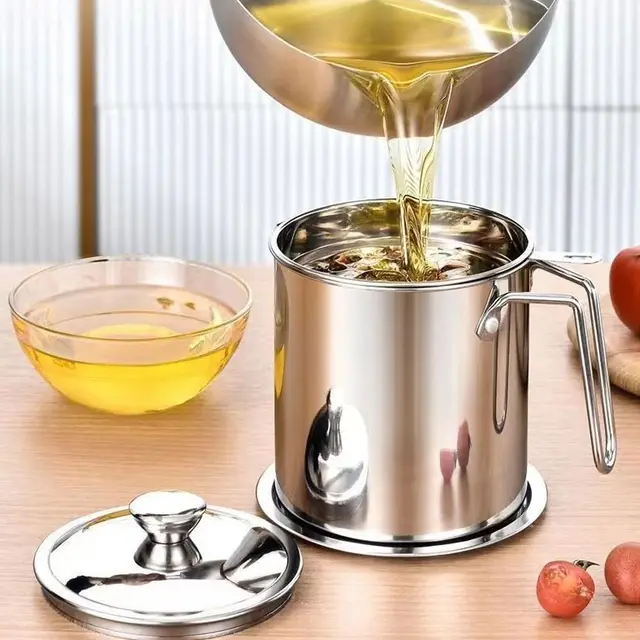 Filtre à Graisse Ménager Récipient à Graisse - CIKONIELF - Acier Inoxydable 304 - Grande Friteuse Huile 3l pot à graisse decoration objets vintage brocante antiquité ceramics... 2 In 1 Oil Strainer Pot Pot à Huile En Inox 304 Avec Filtre - Récipient 2L Pour Friture Et Cuisson - Bec Verseur Et Poignée Récupération Huile Alimentaire MULTIFONCTIONNEL : En plus de filtrer les résidus de saindoux, il peut également être utilisé pour filtrer d'autres huiles de cuisson afin de garantir la santé et la saveur des aliments que vous cuisinez, et une plus grande tranquillité d'esprit. Cuque Conteneur d'huile de cuisson Récipient à graisse 1.4L Acier... MATÉRIAU EN ACIER INOXYDABLE 304 : Il est fabriqué en acier inoxydable 304 de qualité supérieure, résistant aux températures élevées et difficile à rouiller et à corroder, garantissant une utilisation sûre et . 633 g / 22,3 ozCapacité : 2,8 LTaille du produit : env. GRANDE CAPACITÉ DE 2,8 L : Le réservoir de stockage d'huile de cuisson a une capacité de 2,8 litres, ce qui est suffisant pour stocker une grande quantité d'huile pour répondre à vos besoins de cuisson quotidiens. Spécification :Type d'article : réservoir de stockage d'huile de cuissonMatériau : acier inoxydablePoids : env.
