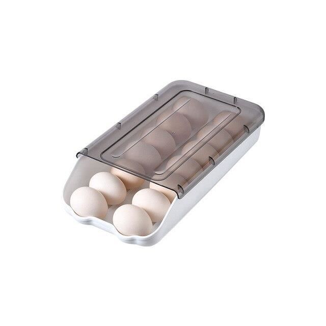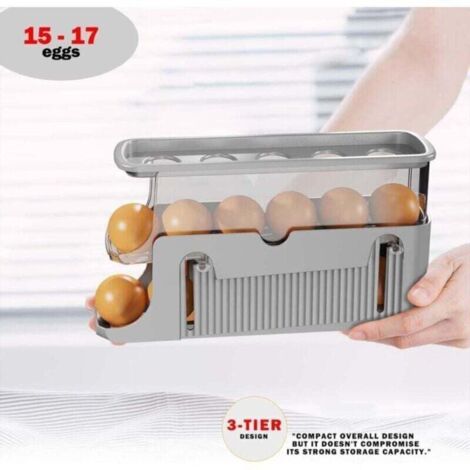 Peu Encombrant pour le Réfrigérateur - Grâce à son organiseur à trois étages, le distributeur d'œufs ne prend que peu de place dans le réfrigérateur. Contenu : 1 porte-œufs pour réfrigérateur. Distributeur Automatique Oeufs Le Récipient à œufs Pour Réfrigérateur Peut Contenir 15 œufs, Support De Rangement œufs 17 Étagère de rangement pliable à 3 niveaux pour réfrigérateur, organiseur... Disposition en trois étapes. Description du produit : Le rangement des œufs est fabriqué en plastique incolore de qualité supérieure avec une construction robuste qui ne doit pas être endommagée. Caractéristiques du produit : Dimensions replié : 29,5 x 11 x 10 cm Couleur : gris/crème Matériau : plastique Poids : 390 g. Si vous n'avez pas besoin de stocker autant d'œufs, il peut être replié sur deux niveaux, ce qui permet de gagner de la place et de répondre à vos divers besoins. Son design incliné à 3 niveaux permet de gagner de la place et de le placer facilement dans le réfrigérateur. Le porte-œufs du réfrigérateur roule automatiquement et n'a pas besoin d'être assemblé, il suffit de placer tous vos œufs sur cet organisateur d'œufs. Il s'adapte parfaitement dans un coin ou sur la porte latérale, ce qui permet de gagner un espace précieux dans le réfrigérateur. Le petit espace permet d'économiser de l'espace. Beaucoup de pays européens vendent les œufs à température ambiante, afin d'éviter les chocs thermiques entre magasin et domicile. Aux États‑Unis, les œufs lavés perdent leur cuticule, d'où une réfrigération stricte. Ainsi, la décision de mettre ses oeufs au frigo dépend aussi du contexte local et du parcours du produit Notre boîte à œufs est fabriquée en plastique de haute qualité, adapté au contact alimentaire, bon fonctionnement. Le plateau peut être nettoyé simplement à l'eau chaude. Ce support à œufs roulant pour réfrigérateur est construit en trois niveaux et peut stocker jusqu'à 17 œufs efficacement. Conservation des œufs durs : combien de temps peut-on espérer les