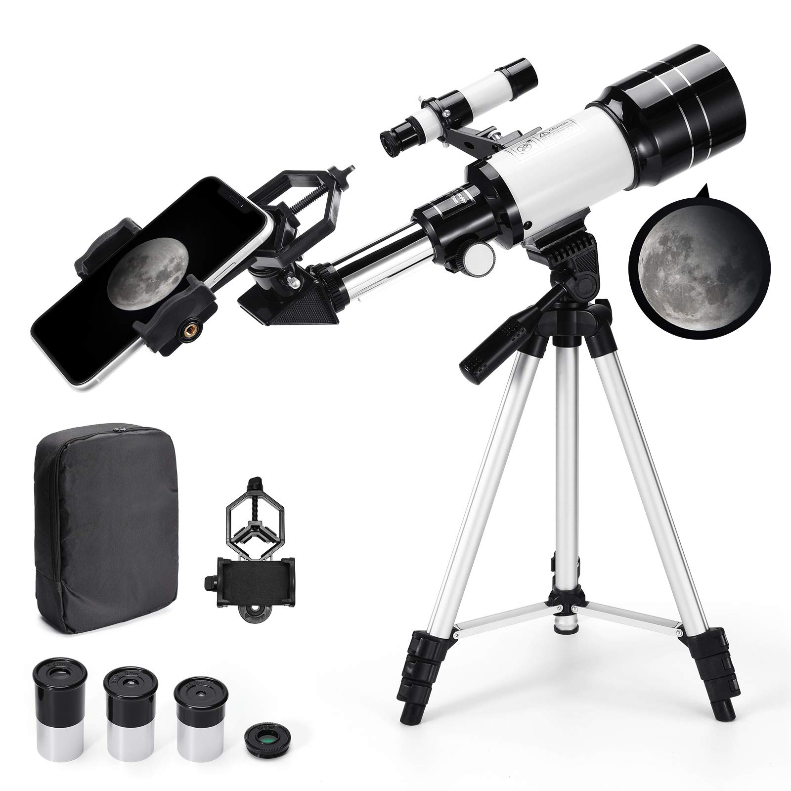 Les lentilles traitées multicouches avec film vert large bande garantissent une transmission lumineuse maximale, une réduction des reflets et un contraste d'image améliorés. NEUF🟢 Télescope Astronomique Réfracteur 70/300mm Sa pupille de sortie de 2,2 mm offre une image lumineuse adaptée à diverses conditions d'observation Télescope Débutant 70mm Télescope Astronomique Réfracteur 70/300mm, FMC Haute Transmission Telescope Astronomique Adulte 🔭 Optique Réfracteur Haute Performance : Xyvolve télescope dispose d'une ouverture de 70 mm et d'une focale de 300 mm (F4,29), offre une excellente capacité de captation de la lumière (100x) et des vues nettes et détaillées avec une distorsion optique minimale (4,9 %). Que ce soit pour observer des paysages urbains, naturels ou astronomiques, ce système optique offre des performances impressionnantes, aussi bien pour les débutants que pour les utilisateurs intermédiaires. Télescope Pour Enfants Trépied Monoculaire Léger, Grossissement Maximal... La résolution d'image de 162 lignes/mm garantit des prises de vue nettes, faisant de ce télescope une excellente introduction à l'astronomie photographique. 🔭 Localisation Rapide des Cibles et Observation Confortable : Le chercheur 5x24 offre une visée précise, facilitant la localisation rapide des objets célestes. Télescope pour débutants 150X-15X, 70 mm HD Télescope réfracteur pour adultes astronomie avec trépied, support de téléphone, lunette de recherche, filtre... Cette flexibilité permet aux observateurs d'adapter le grossissement aux conditions d'observation et aux cibles, du balayage grand champ des amas d'étoiles à l'observation détaillée de la Lune et des planètes, garantissant ainsi une puissance adaptée à chaque objet céleste. La Barlow 1,5x permet des grossissements de 22,5x et 75x, tandis que la Barlow 3x permet des grossissements de 45x et 150x. Avec un champ de vision réel de 1,30° et un champ linéaire de 18,59 m, ce télescope astronomique offre des vues à grand champ, idéales pour les amas d'étoiles, les grandes nébuleuses et les régions célestes étendues. 1 Étape 1 2 Étape 2 3 Étape 3 4 Étape 4 5 Étape 5 Ce réglage précis et ce support robuste rendent le télescope facile à utiliser pour les débutants, tout en offrant la stabilité nécessaire pour les observations à fort grossissement et les débutants en astrophotographie.